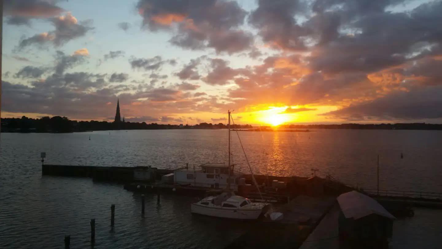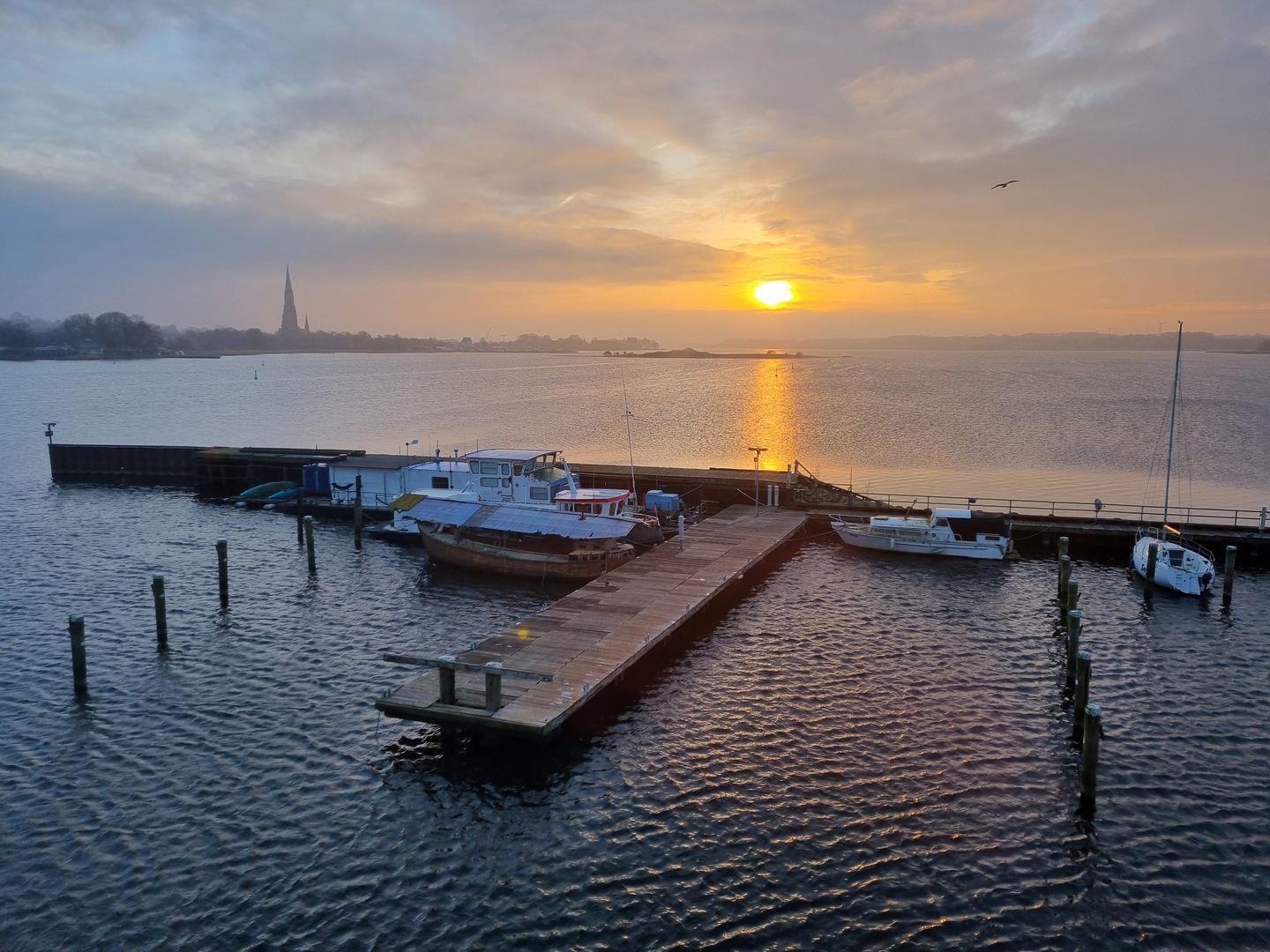 Mit dem Gefühl auf dem Wasser zu sitzen, bieten sich einem zu jeder Tageszeit unglaubliche Ausblicke auf den Ostseefjord Schlei, mit atemberaubenden Sonnenaufgängen. Selbst bei weniger perfektem Wetter zieht der Nebel über dieser Bucht seine Beobachter in den Bann.