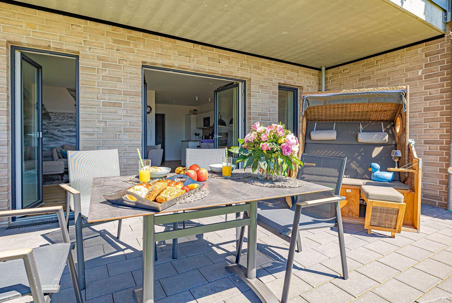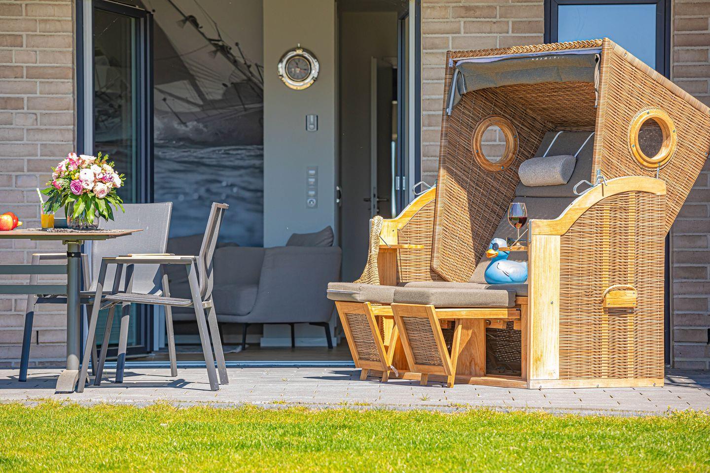 Auf der Terrasse kannst Du Dich entspannen und an lauen Abenden im Strandkorb Deine Urlaubstage ausklingen lassen. Dank des Elektrogrills kannst Du Grillabende mit der ganzen Familie veranstalten.