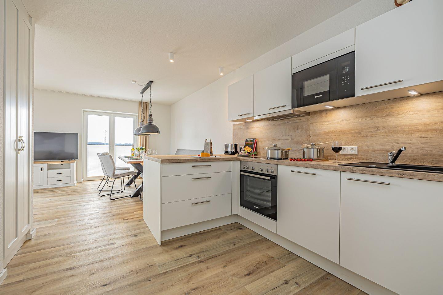 Die vollausgestattete Küche lässt keine Wünsche offen und im Wohnzimmer kannst Du Deine Urlaubstage auf dem Sofa vor dem Smart-TV ausklingen lassen.