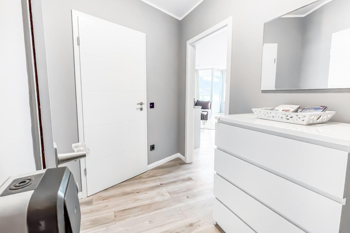 Willkommen im Wikinger Loft - Ihrer Traumferienwohnung mit möbliertem Balkon und atemberaubendem Wasserblick! Diese charmante Wohnung auf der 14. Etage bietet Ihnen nicht nur einen Garagenstellplatz, sondern auch jeglichen Komfort für einen unvergesslichen Aufenthalt.