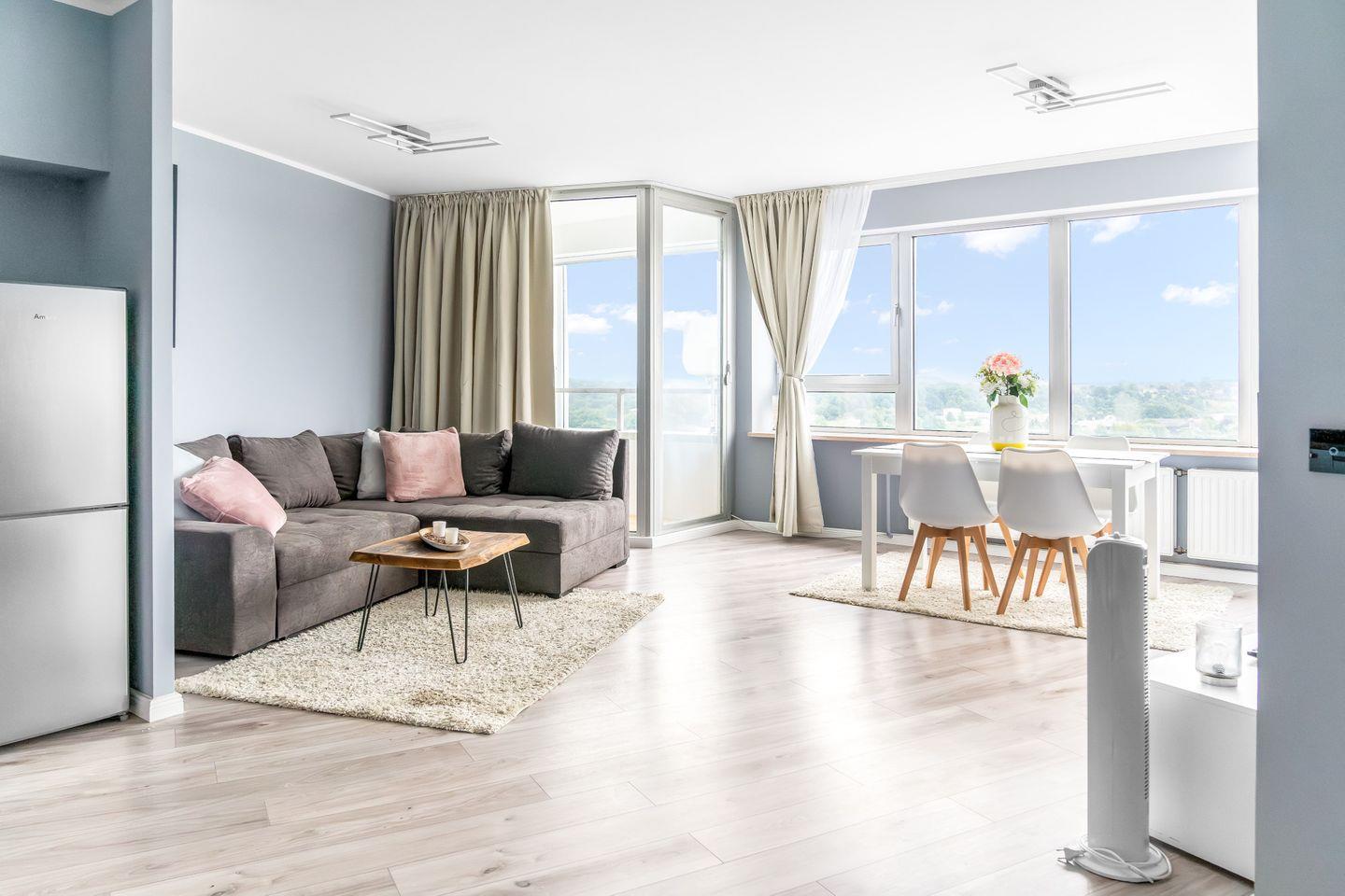 Mit einer Größe von 62qm ist dieses Nichtraucher-Objekt ideal für bis zu 4 Personen und 1 Hund geeignet. Die Wohnung verfügt über 2 Zimmer: ein gemütliches Schlafzimmer mit einem komfortablen Boxspringbett (180x200cm), Kleiderschrank und Verdunklungsmöglichkeiten sowie einen kombinierten Wohn- und Essbereich mit offener Küche.