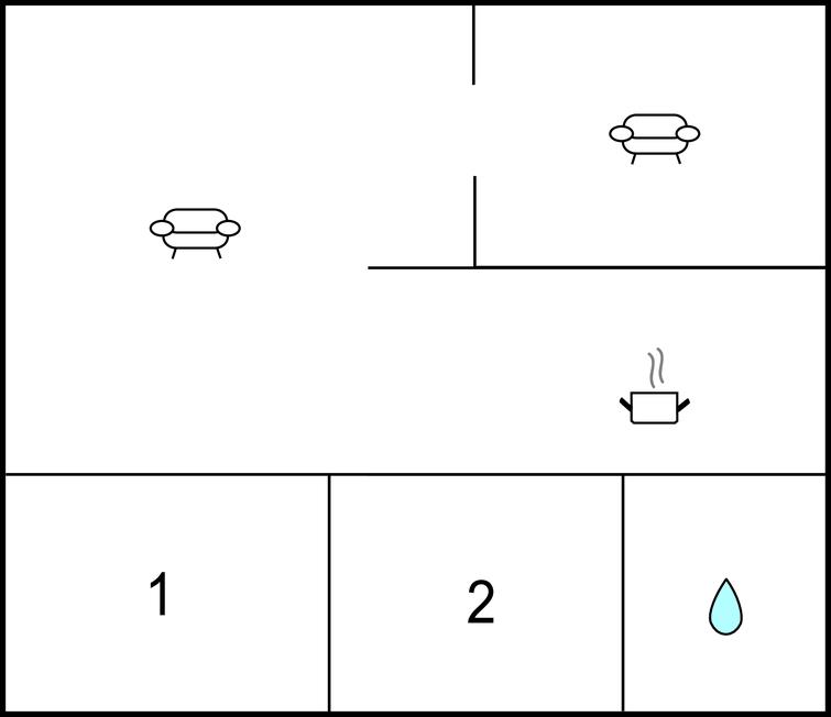 Leiligheten har en koselig stue med vedovn. Begge soverommene er utstyrt med dobbeltseng.