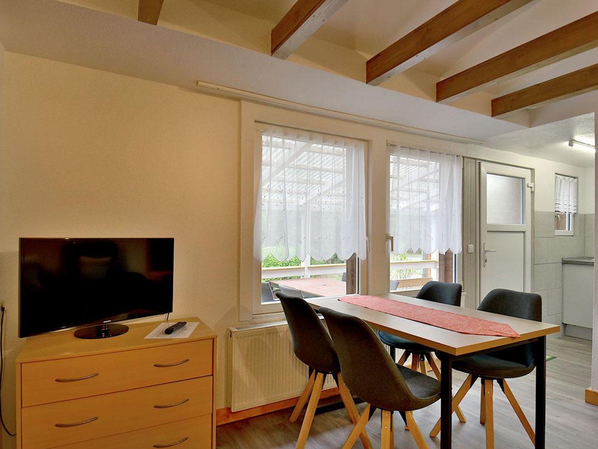 2 Schlafräume mit je 2 Einzelbetten, Wohnraum mit Kabel-TV, Bad mit Waschtisch, Dusche und WC, Küche mit 4 Kochplatten und Backofen, Grundausstattung, Kühlschrank, Kaffeemaschine (1x4 Filtermaschine), Toaster, Wasserkocher, Geschirr, Besteck, Gläser, Töpfe, Pfanne. Überdachte Terrasse.