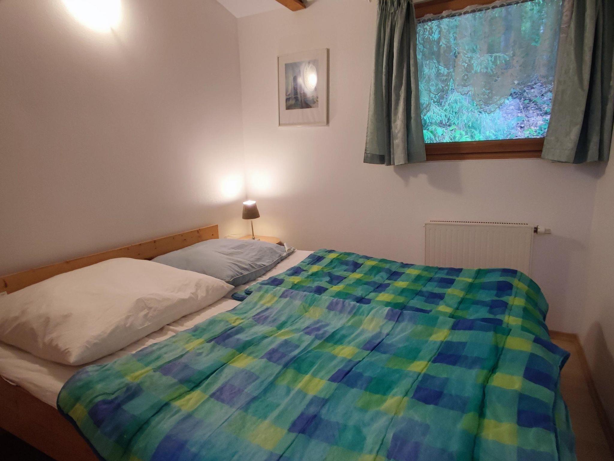 1 Schlafraum mit 160 cm Doppelbett, 1 Wohnraum mit Tisch, Couch und Kabel-TV, Küchennische mit Herd, Grundausstattung, Kühlschrank, Kaffeemaschine (1x4 Filtermaschine), Toaster, Wasserkocher, Geschirr, Besteck, Gläser, Töpfe, Pfanne. Bad mit Waschtisch, Dusche und WC. Überdachte Terrasse.