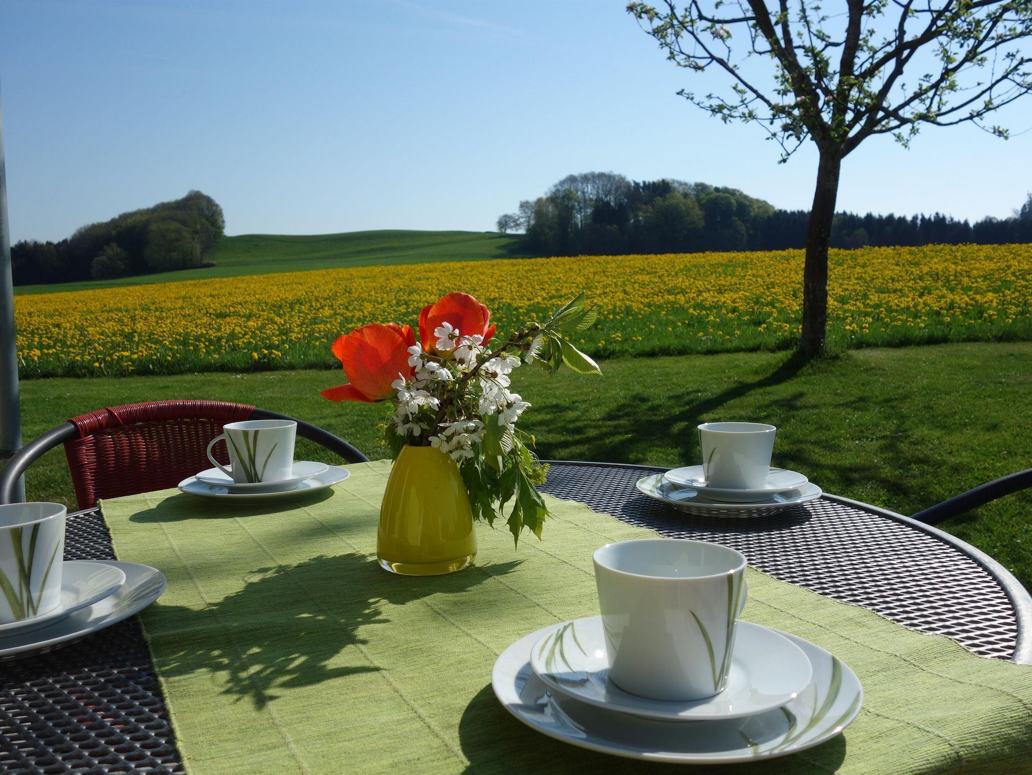 Starten Sie den Tag auf Ihrer Terasse oder Balkon mit dem einmaligen Blick auf das Schloss Waldburg und der freien Natur. Bei schönem Wetter sind die Berge ein wahrer Blickfang.