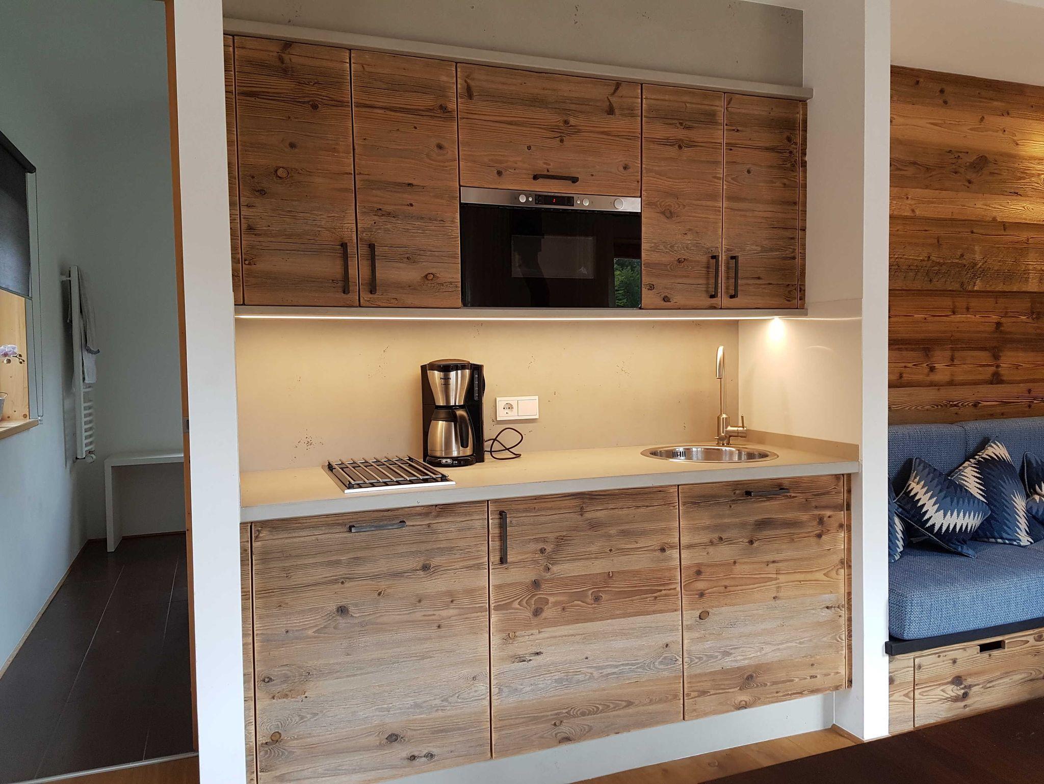 Das Aparment verfügt über einen schönen Wohn-Essbereich mit einem Schwedenofen. Die Küchenzeile ist mit allen Utensilien ausgestattet. Es gibt sowohl eine Filterkaffemschaschine als auch eine Nespressomaschine. Im Schlafzimmer ist wie im Wohnbereich ein Fernseher. Vom großzügigen Balkon haben Sie einen tollen Blick in die Berge.