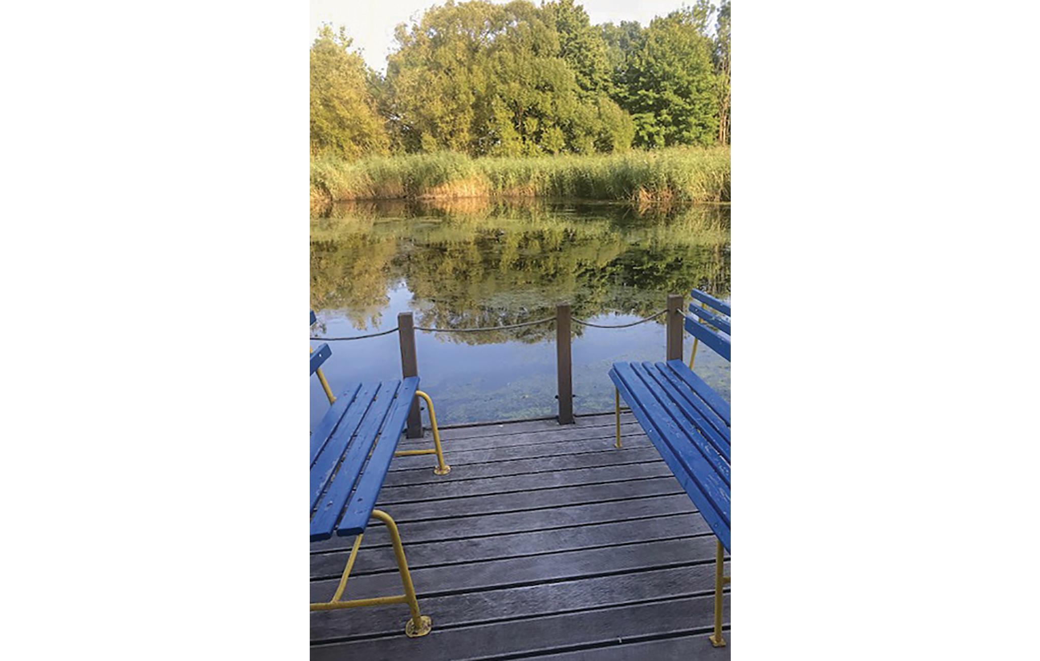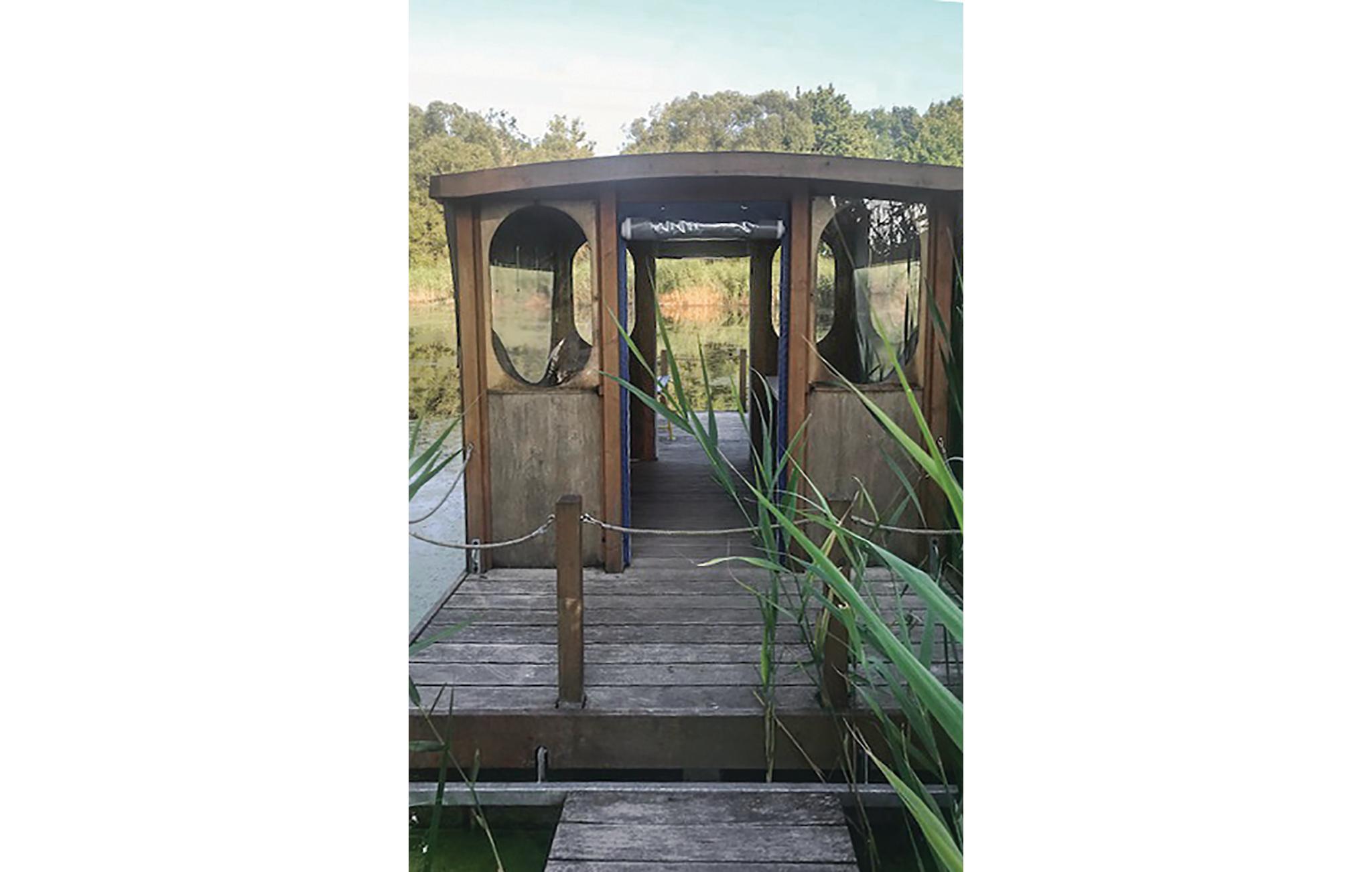 En liten katamaran er tilgjengelig på slottsdammen. Denne er godt forankret og har plass til opptil 8 personer, som kan drikke kaffen sin her i koselige hagemøbler eller bare nyte solen.