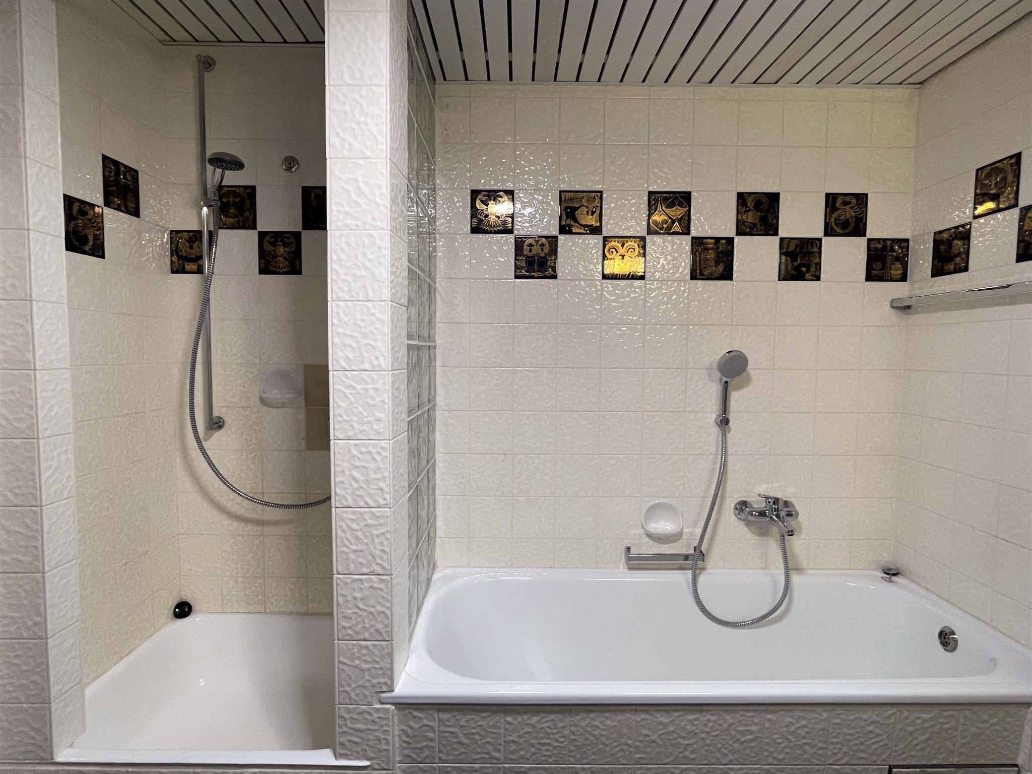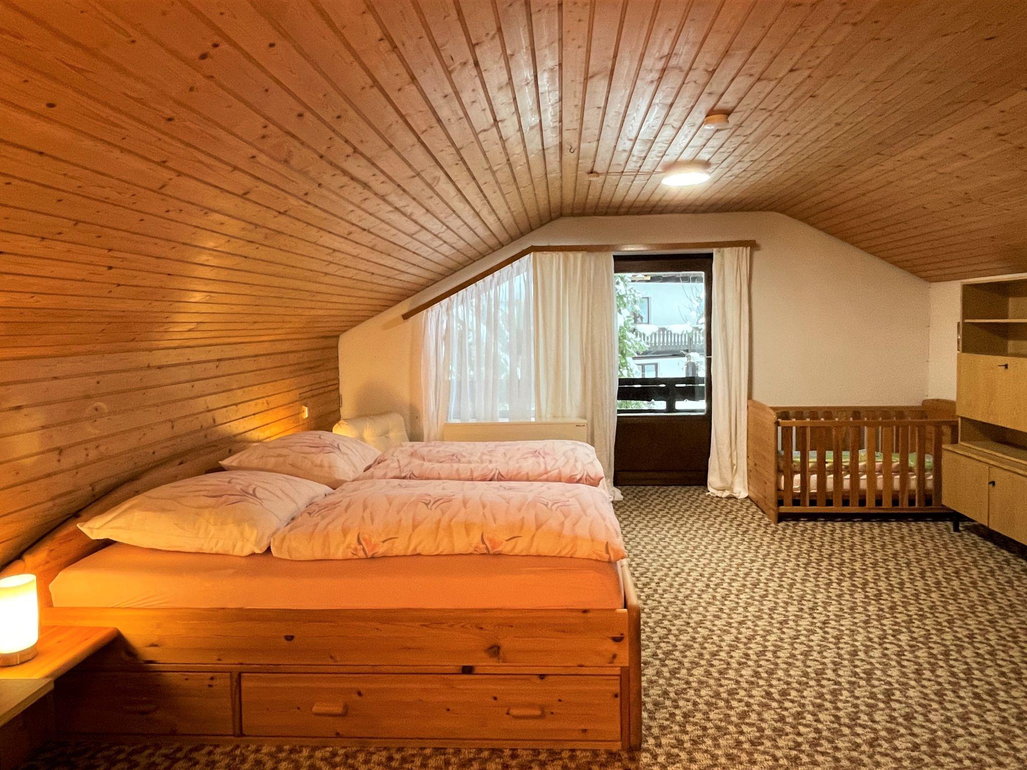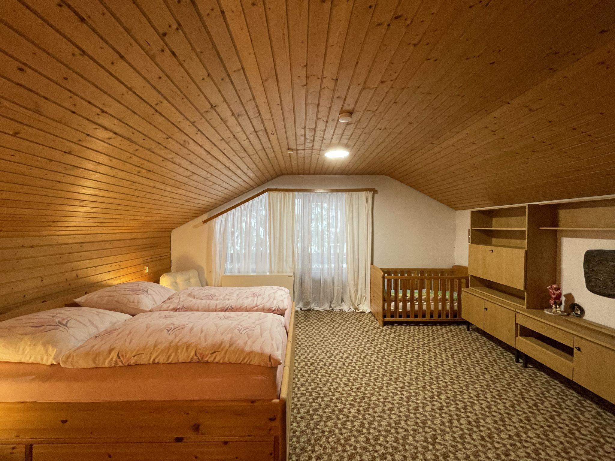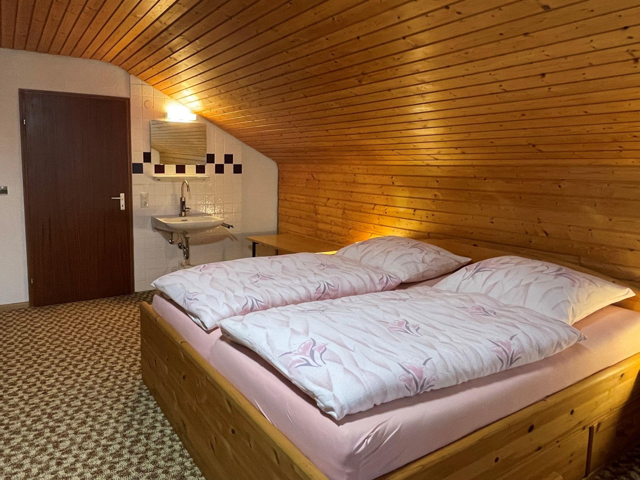 "Habsberg", 4-room apartment 120 m2 on 2 levels. Spacious, partly with sloping ceilings, simple and cosy furnishings: entrance hall. Large living/dining room with Scandinavian wood stove (only for decoration), dining table and satellite TV (flat screen). Exit to the balcony. 1 double bedroom with 1 double bed (200 cm, length 200 cm). Kitchen (oven, dishwasher, 4 ceramic glass hob hotplates, toaster, kettle, microwave, electric coffee machine) with hatch. Bath/shower/WC. Heating. Upper floor: (steep stair), 1 large room with 1 double bed (1 x 200 cm, length 200 cm), hand-basin. Exit to the balcony. 1 room with 1 double bed (1 x 200 cm, length 200 cm), hand-basin. Sep. WC. Wooden floors, carpet. Large balcony. Balcony furniture, electric barbecue. Beautiful view of the garden and the forest. Facilities: washing machine, iron, baby cot, hair dryer. Internet (WiFi, free). Parking at the house. Please note: non-smokers only. Smoke alarm, fire extinguisher. When there are less than the maximum number of guests staying at the property, not all of the bedrooms will be available for use.
