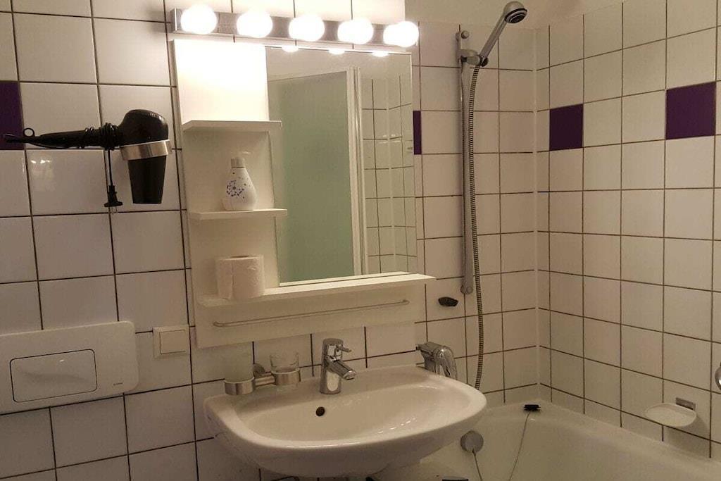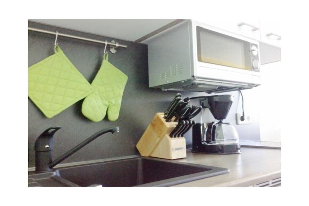 I 2. etasje: (entré(, , ), åpent kjøkken(spisebord, komfyr med kokeplater, vannkoker, brødrister, kaffetrakter, mikrobølgeovn, oppvaskmaskin, kjøleskap, fryser), Stue/spisestue(, bibliotek, 1 persons sovesofa, TV, spisebord, DVD-spiller, Blu-ray-spiller), soveværelse(dobbeltseng), soveværelse(dobbeltseng), bad(, WC, badekar, dusj, håndvask, Hårtørker)) , , Internett-tilgang, tørketrommel, vaskemaskin, tørkeskap