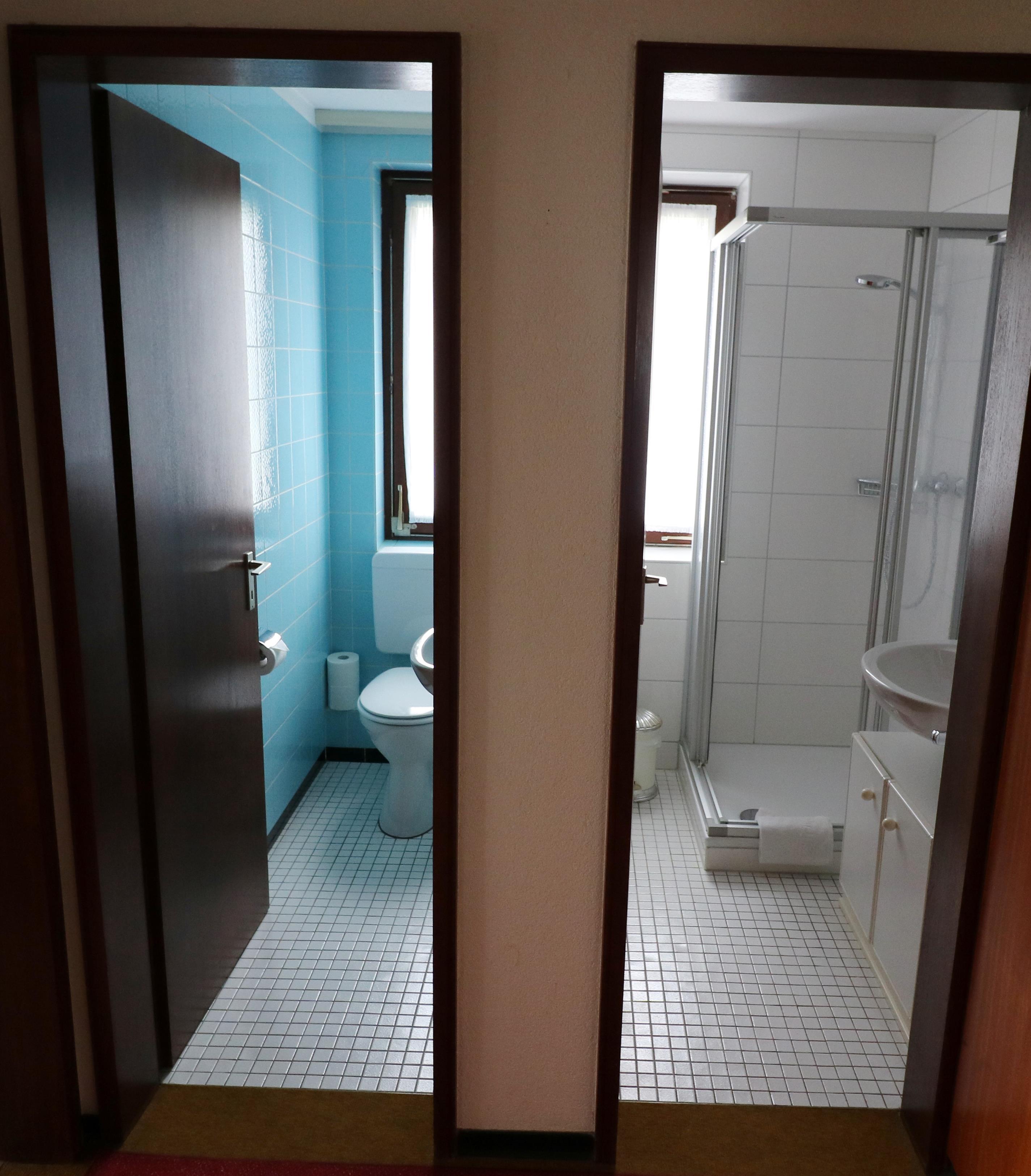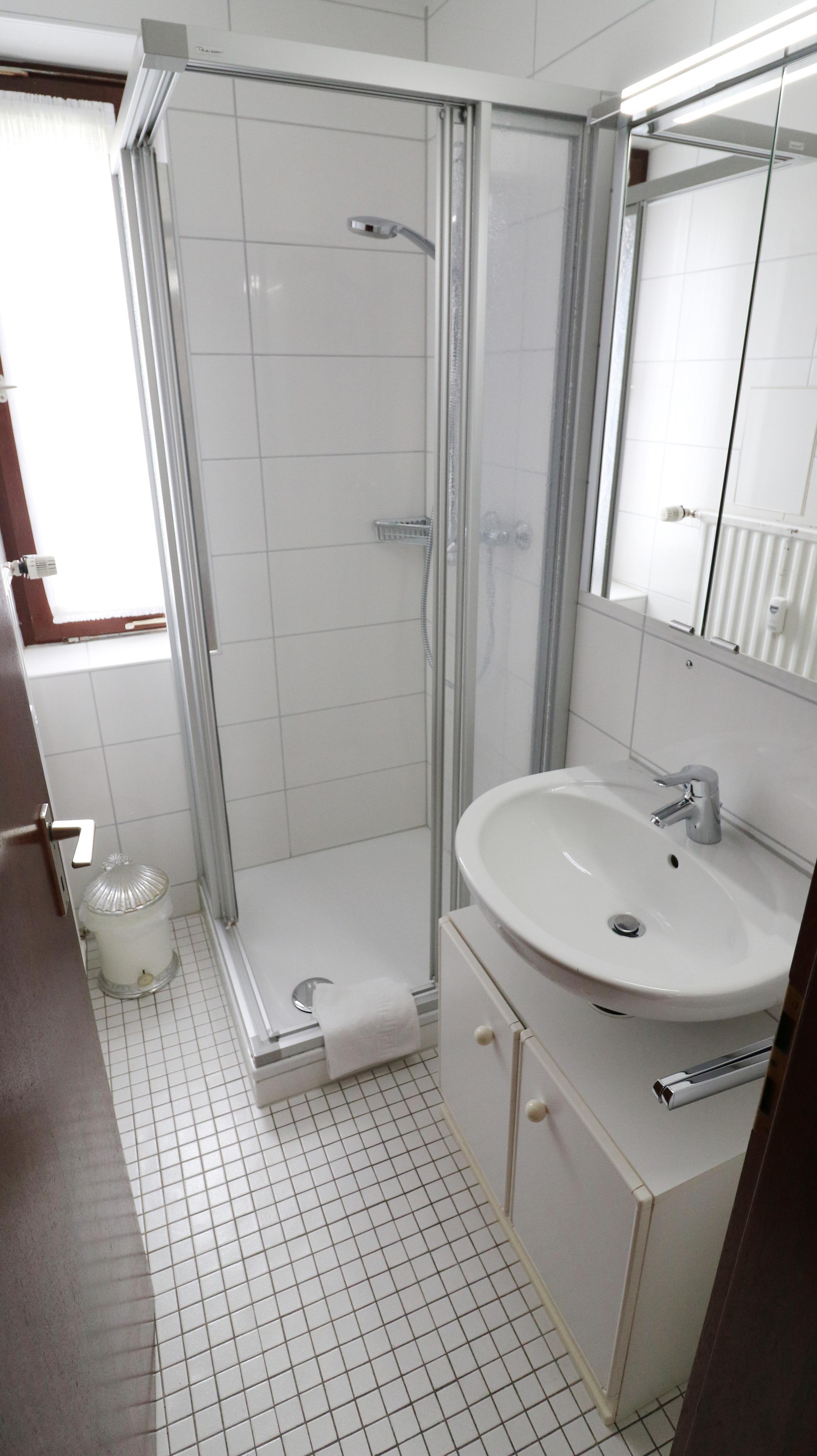 Im Badezimmer befindet sich eine Dusche, das WC ist seperat.