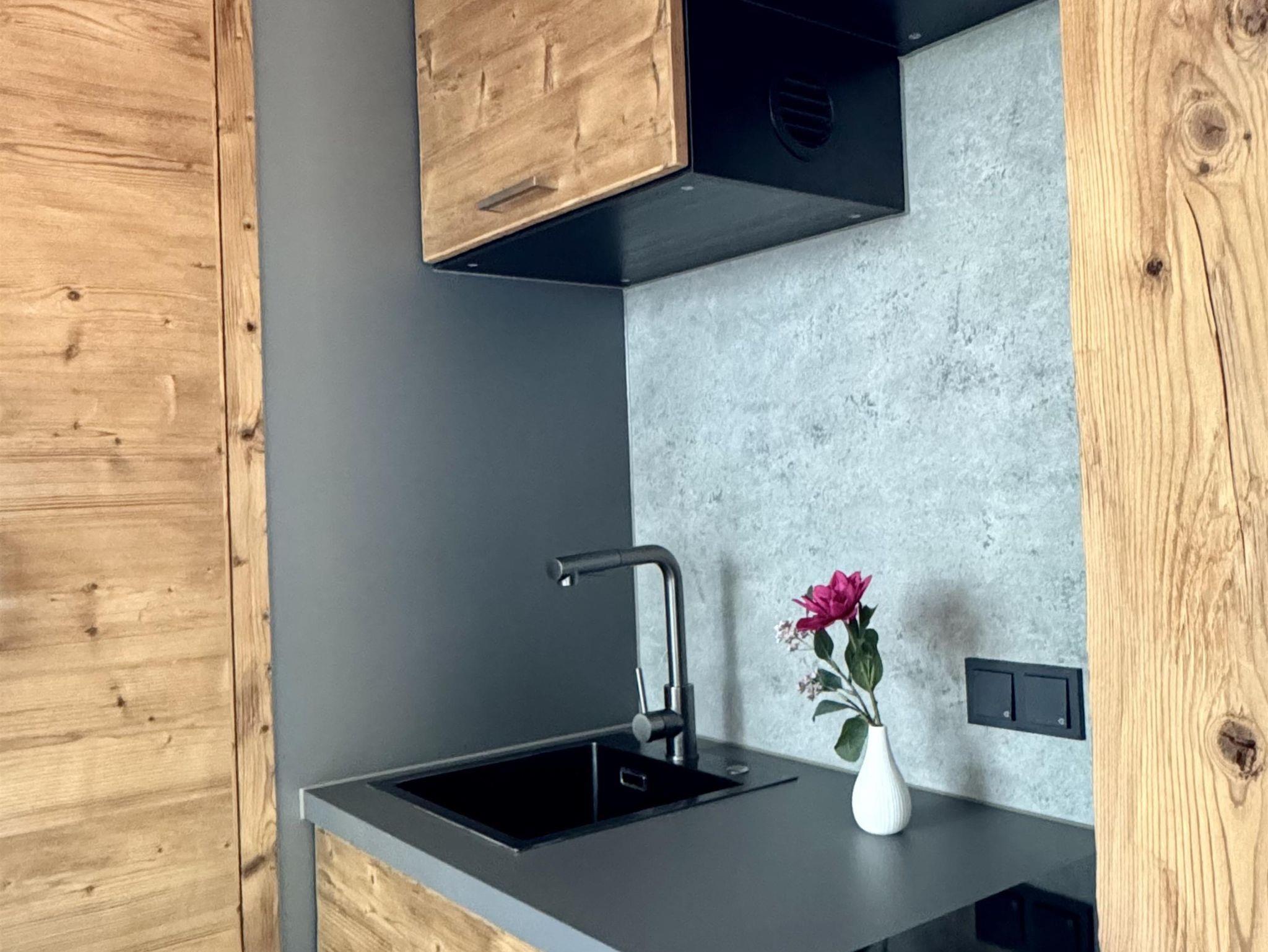 -Ausstattung: Heizung, Klimaanlage, Kochmöglichkeit, kleiner Kühlschrank, Tee & Kaffee, Wasserkocher, Geschirr/Besteck, Haartrockner, Handtücher, Bettwäsche
