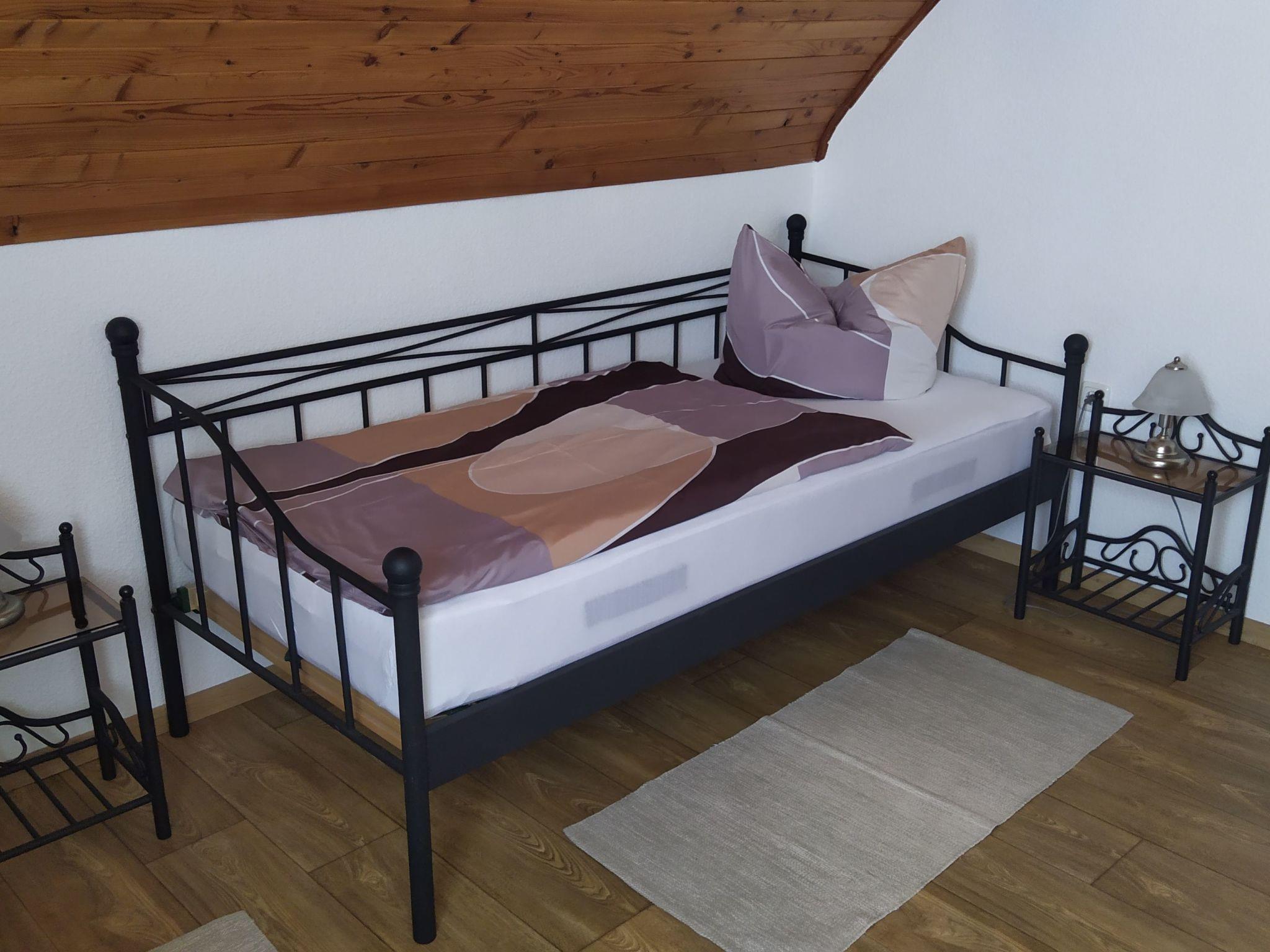 The outdoor swimming pool can be reached on foot in just a few minutes. The winter sports resort of Oberhof is probably the best known in Thuringia. It actually offers the complete winter sports programme for everyone, from bobsleighing, biathlon, ski jumping and cross-country skiing (also all year round in the largest indoor ski hall in Europe). Many visitors who have been to this idyllic area of Schmalkalden are drawn back again and again. There are numerous and above all attractive excursion destinations in and around Schmalkalden, so that one week is not enough to see everything. An absolute must is the town of Eisenach and especially Wartburg Castle. If you want to get to know Thuringia, then you've come to the right place! Important note ! There is only one bedroom with 2 single beds. 2 further sleeping possibilities offer in the parlour a very comfortable pull-out couch 2.00 m x 1.80 m lying surface. On request 1 baby cot (free of charge) can be added.