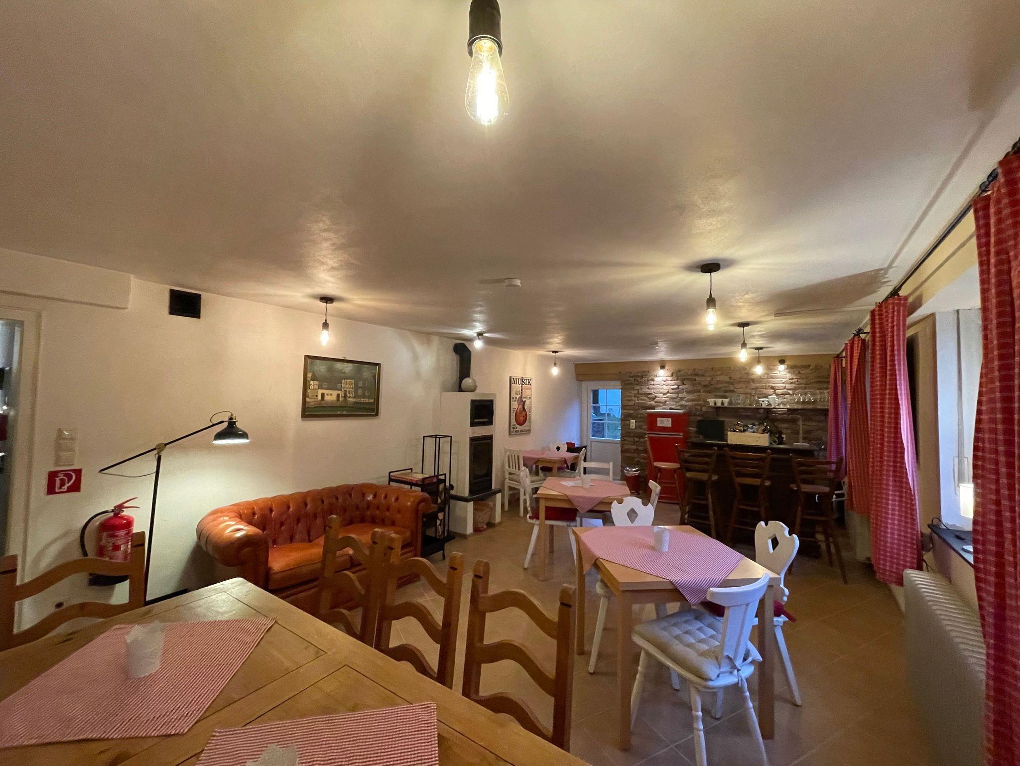 Für schöne und gemütliche Abende, steht unser Gemeinschaftsraum bereit. In diesem findest du einen Holzofen, einen Getränkekühlschrank sowie ausreichende Bestuhlung und Ausstattung.