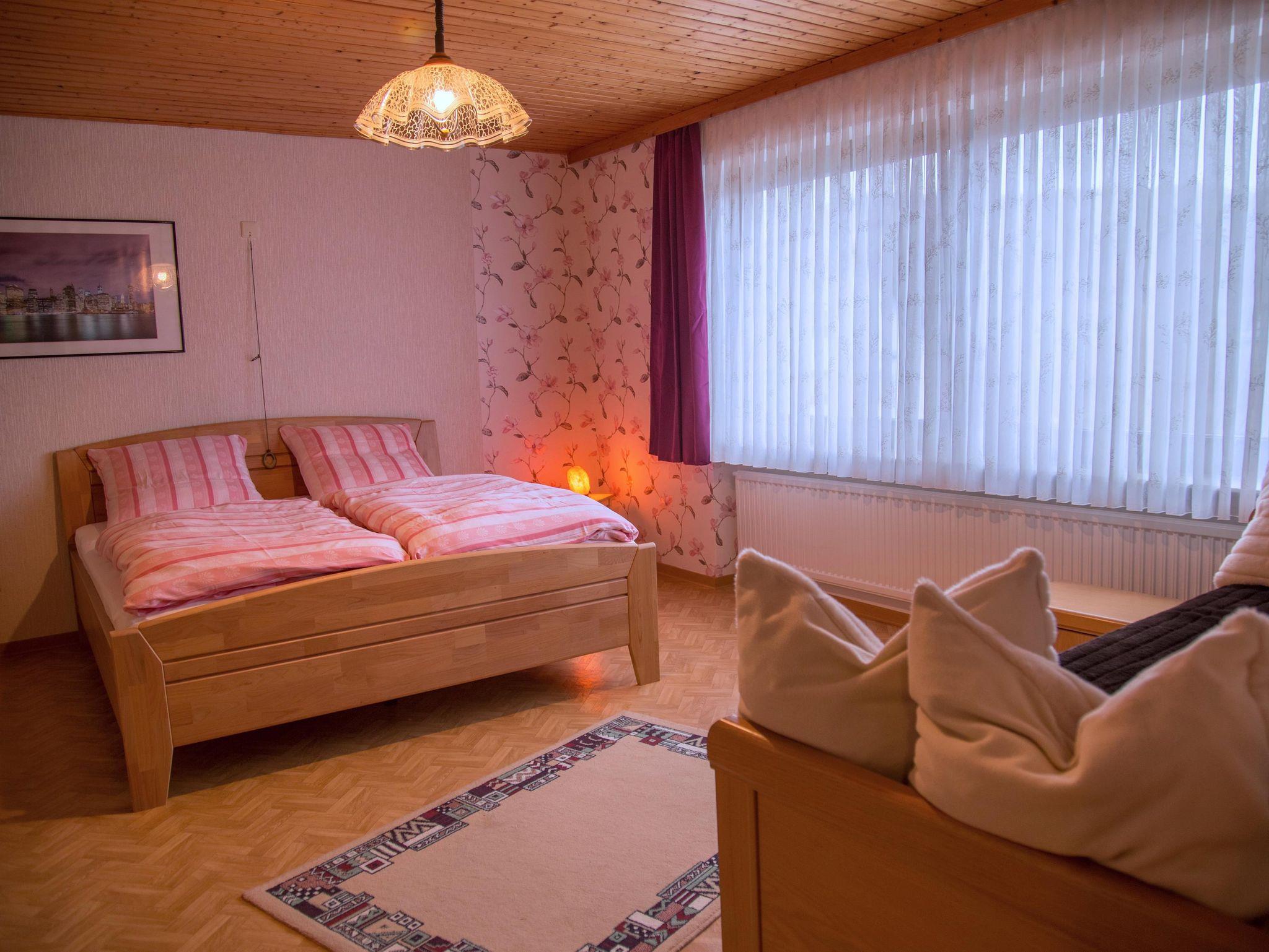 Schlafzimmer Irmgard: 2 Einzelbetten 90x200, 2 Hocker, 1 Schwebetürenschrank, 2 Stühle, 1 Tisch