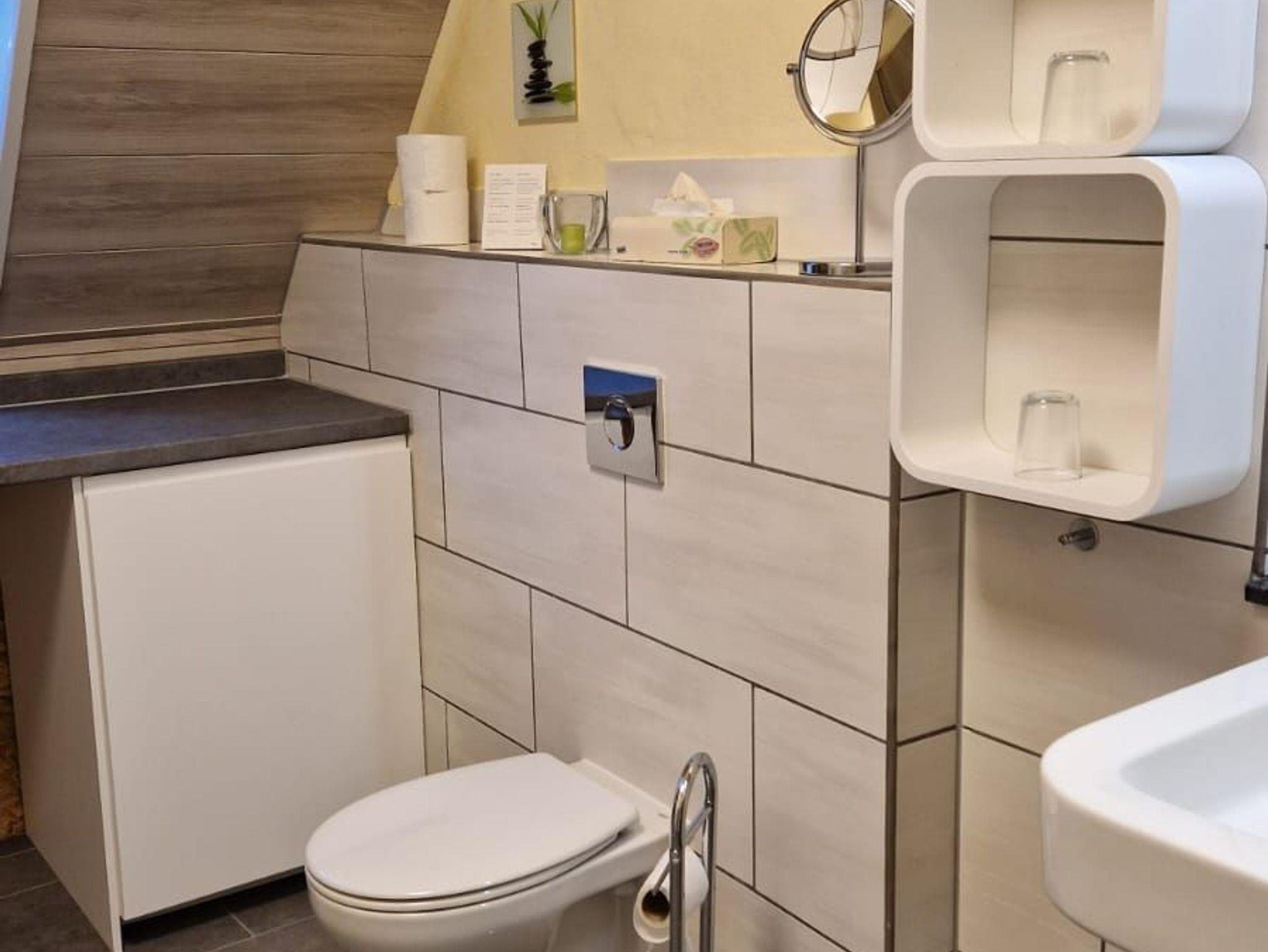 Das Zimmer liegt im 1. Stock und ist über eine Treppe erreichbar.