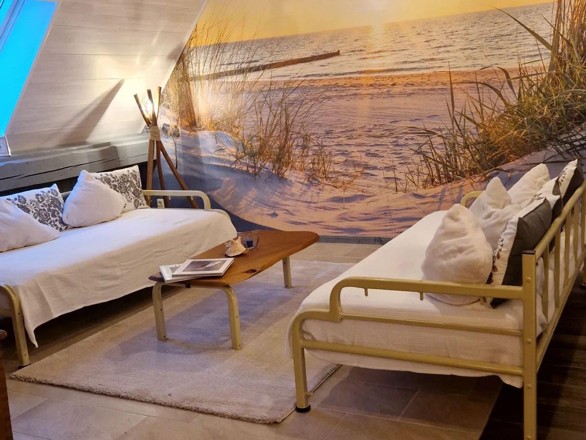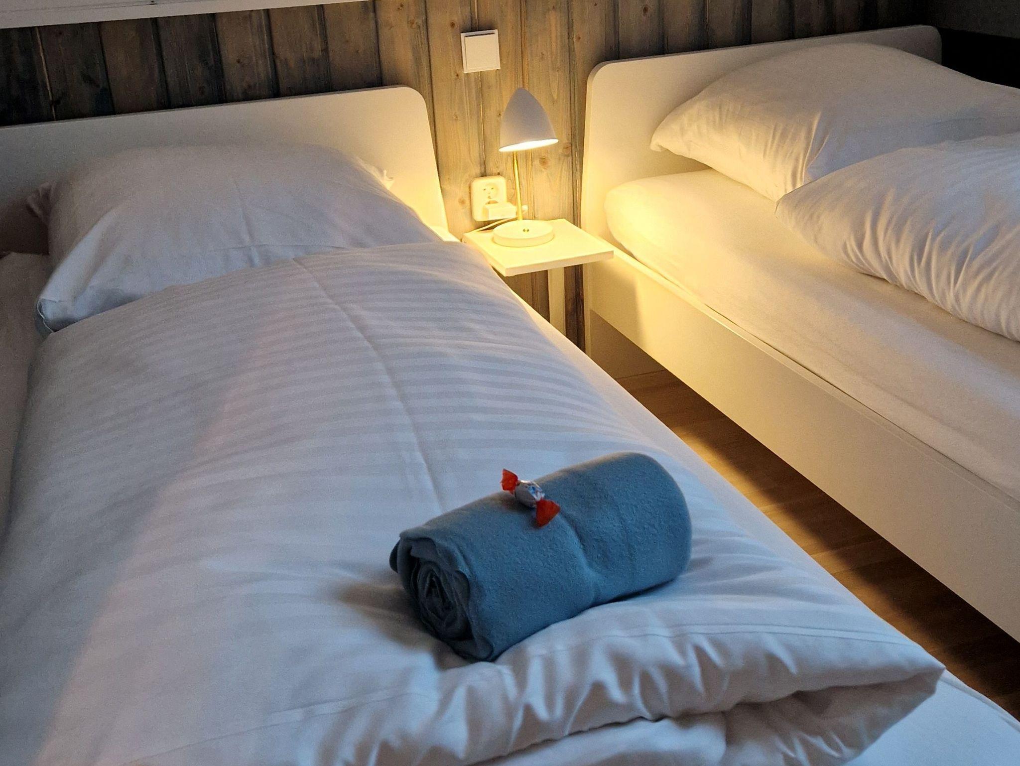 Zusätzlich im Wohnbereich 2 Einzelbetten. Ein Bad mit Dusche /WC sowie eine offene Küche. Sat TV