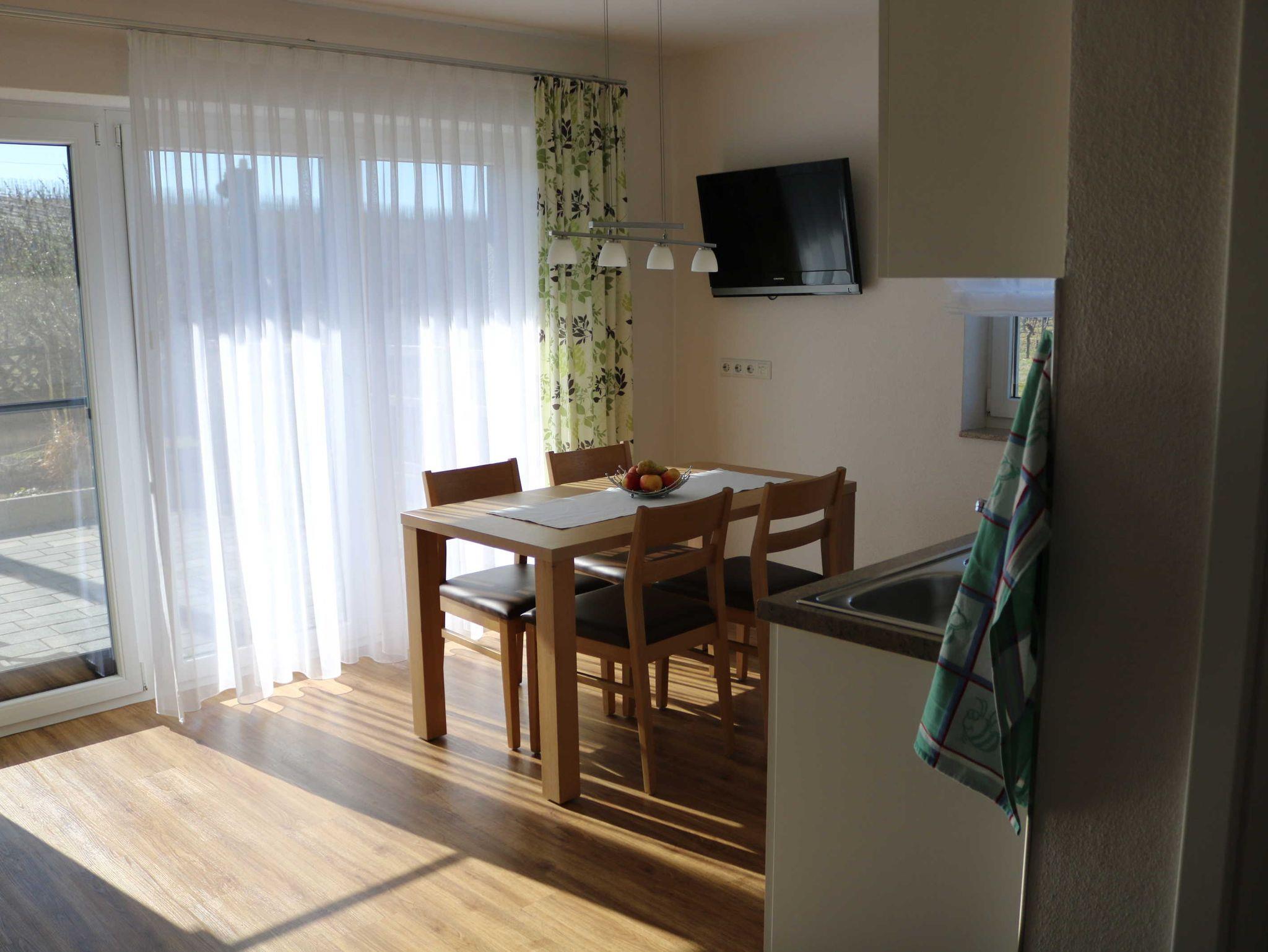 Die Ferienwohnung ist mit hochwertigen Möbeln, kompletten Küchenzeile, Geschirrspüler, Fußbodenheizung, Südterrasse ausgestattet.