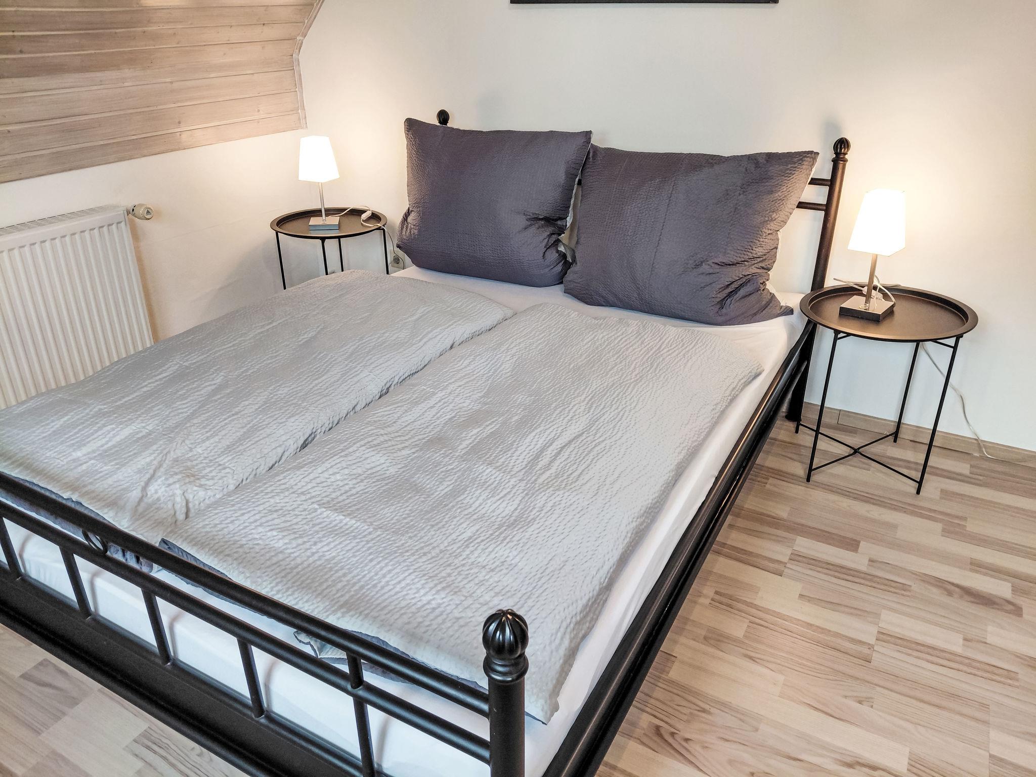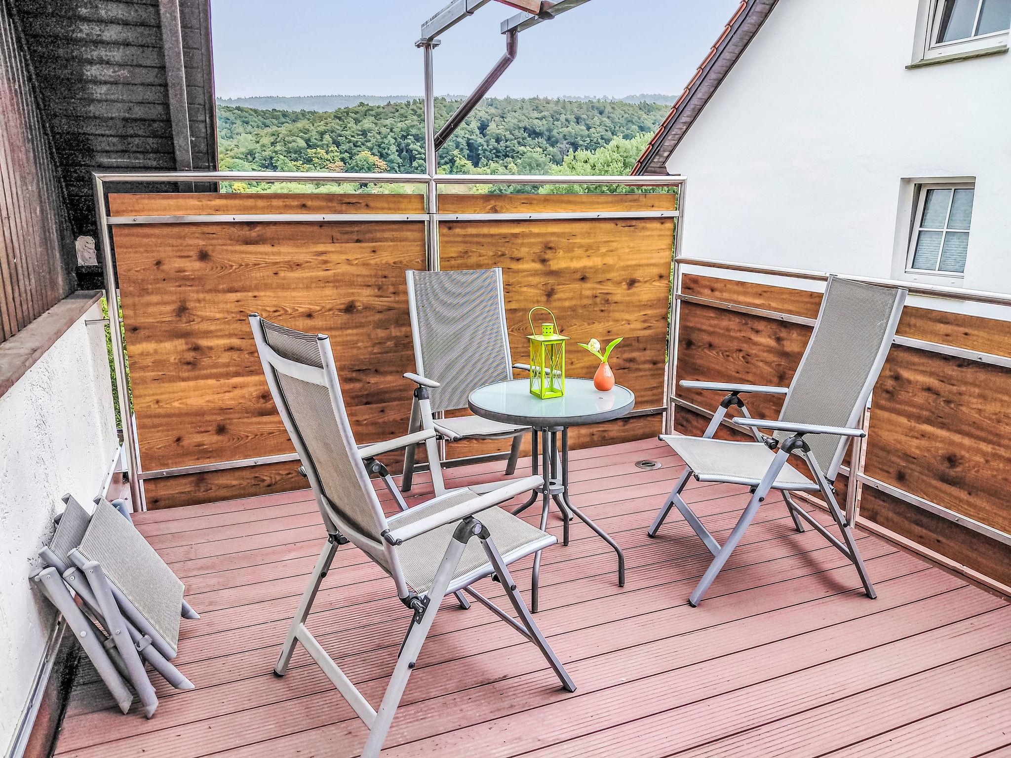 "Marie", 2-room apartment 65 m2, on the upper floor. Tasteful and cosy furnishings: living/dining room with satellite TV (flat screen), radio. 1 room with 1 french bed (140 cm, length 200 cm), 1 folding bed. Exit to the balcony. Kitchenette (mini-oven, oven, 2 ceramic glass hob hotplates, toaster, kettle, microwave, freezer, electric coffee machine). Shower/WC. Oil heating. Balcony 12 m2. Balcony furniture, deck chairs (2). View of the countryside. Facilities: children's high chair, baby cot, hair dryer. Internet (WiFi, free). Please note: non-smokers only, no parking. Smoke alarm, fire extinguisher.
