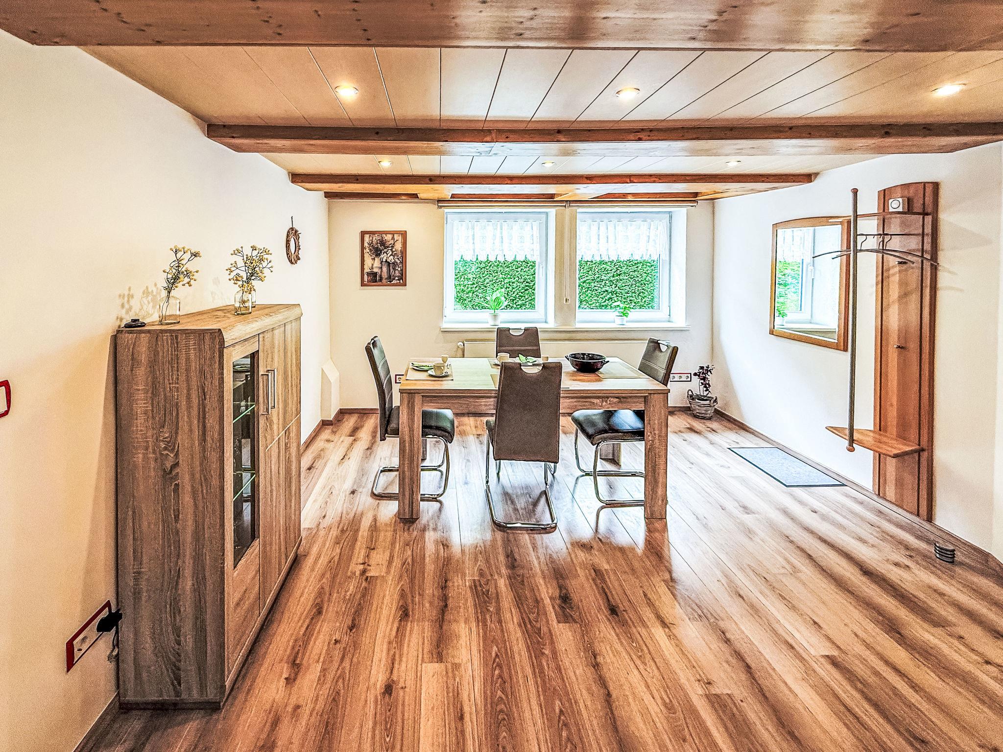 Semi-detached house, renovated in 2025. 200 m from the centre of Schwalenberg, in a central, quiet, sunny position on a slope. Public parking. Supermarket 500 m, restaurant 150 m, bus stop 500 m, railway station "Schieder-Schwalenberg" 5 km, outdoor swimming pool 5 km, indoor swimming pool 15 km. Golf course (18 hole) 14 km, tennis 5 km, children's playground 200 m. Nearby attractions: Tierpark Bad Pyrmont 14 km, Hermannsdenkmal 32 km. Well-known lakes can easily be reached: Schiedersee 6 km. Please note: Loading and unloading of baggage is possible at the holiday house.