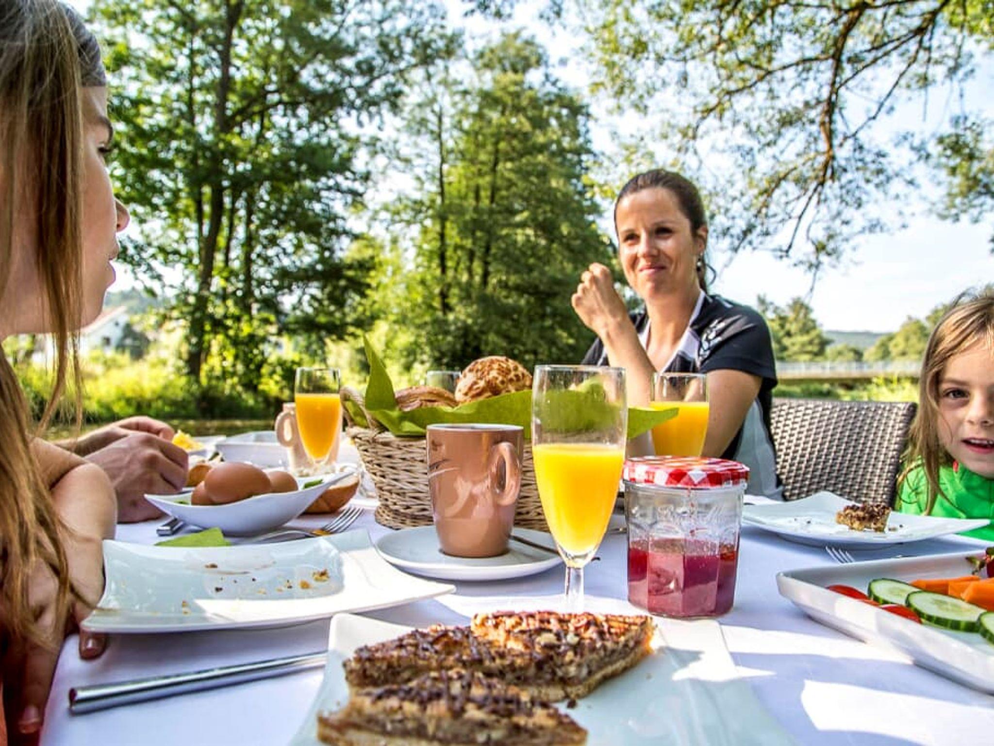Hochwertig eingerichtet mit heimischen Hölzern und auf das alte Mühlenanwesen abgestimmt. Die teilweise moderne Einrichtung harmonisiert mit dem Charm des alten Bauernhauses.