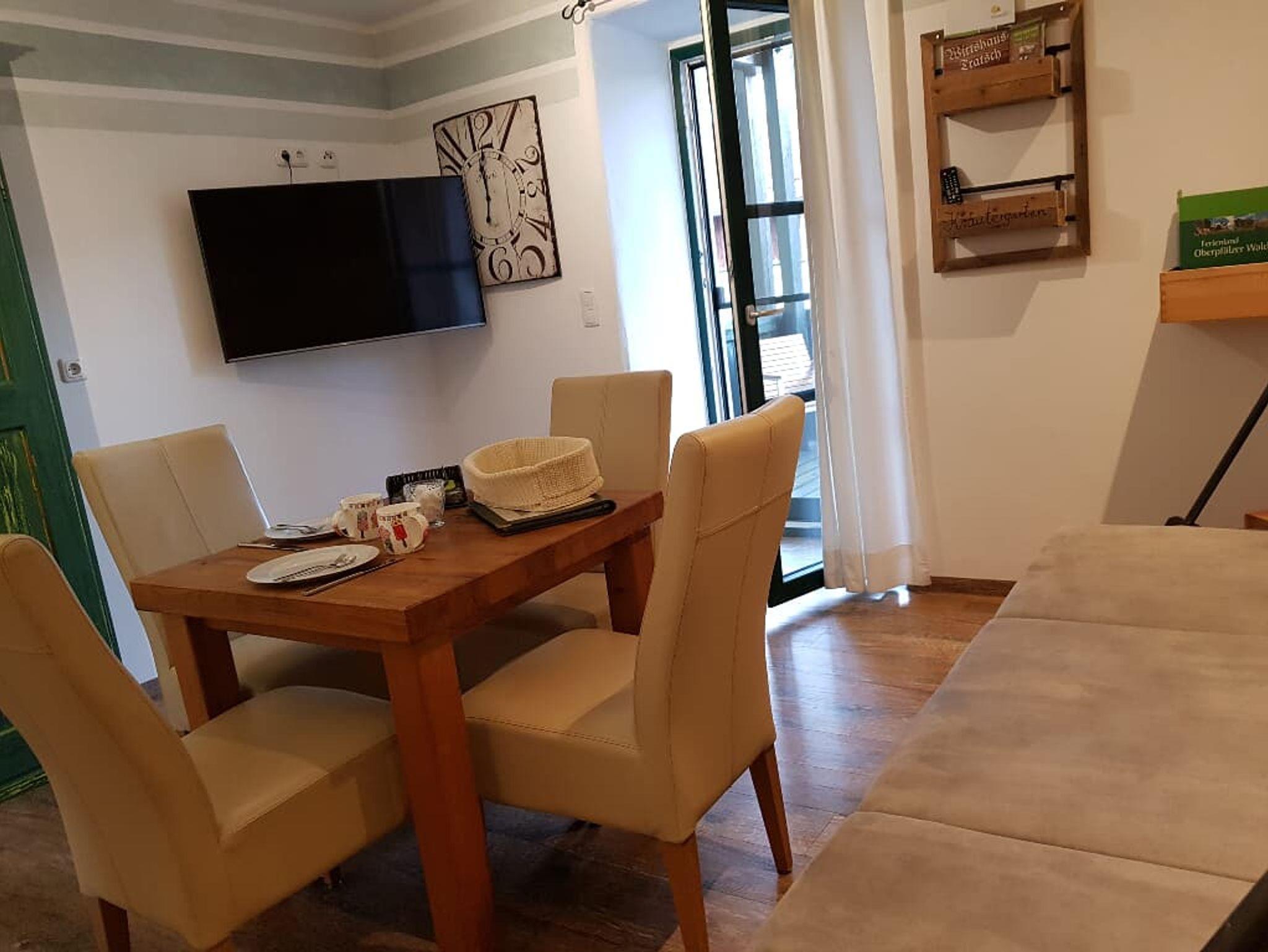 Das WLAN und den Parkplatz vor dem Haus können Sie kostenfrei nutzen. Die Wohnung befindet sich im Erdgeschoß und ist hochwertig eingerichtet mit heimischen Hölzern und auf das alte Mühlenanwesen abgestimmt. Die teilweise moderne Einrichtung harmonisiert mit dem Charm des alten Bauernhauses.