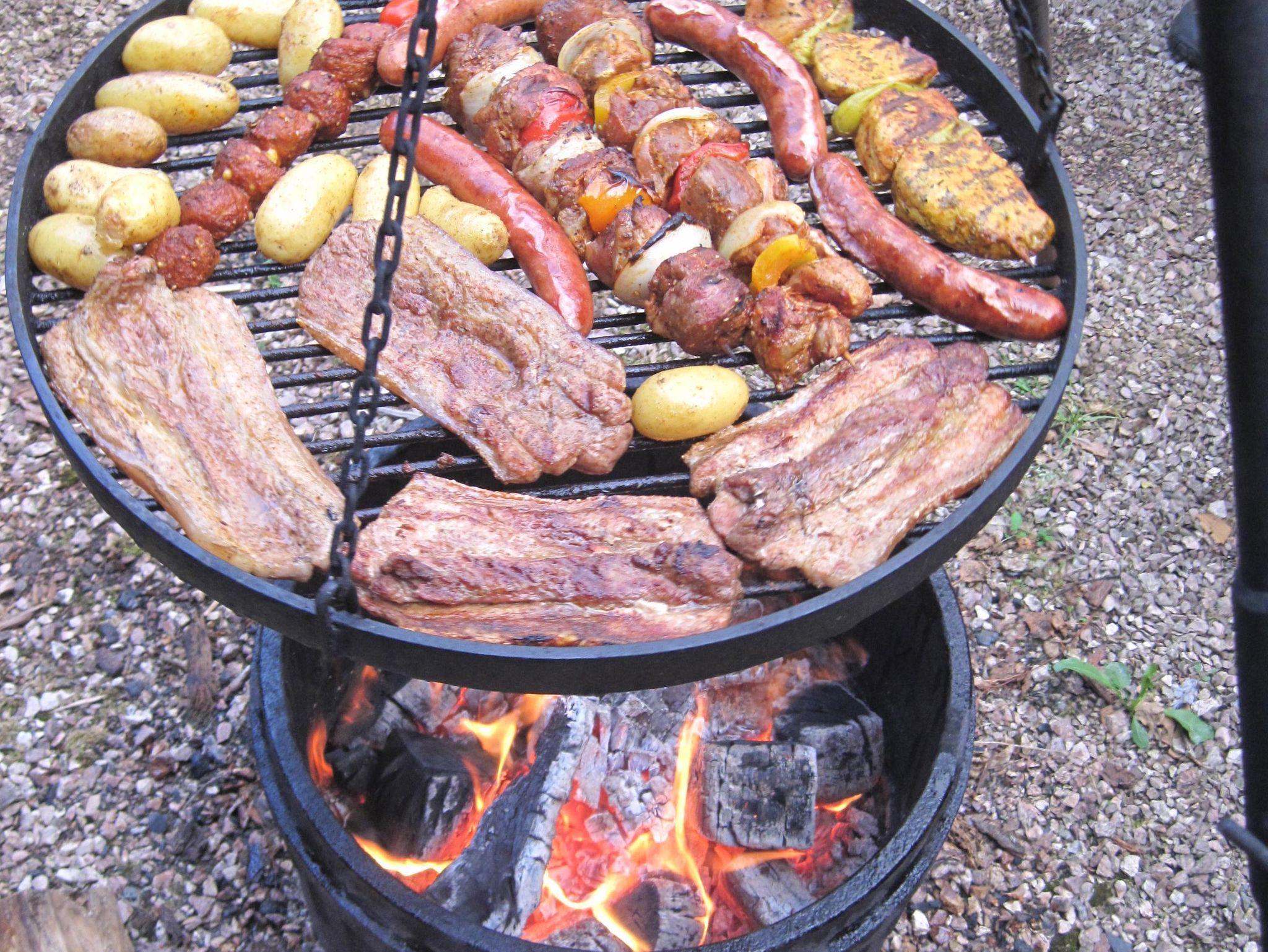 Wir bieten auf dem Gelände eine Grillstelle -Holz ist gratis- mit Hütte und Getränkeservice zum Selbstkostenpreis.