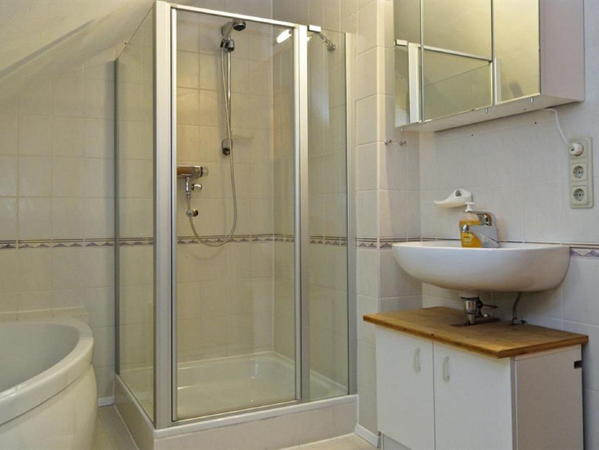 Bad mit Dusche, Eckbadewanne und WC