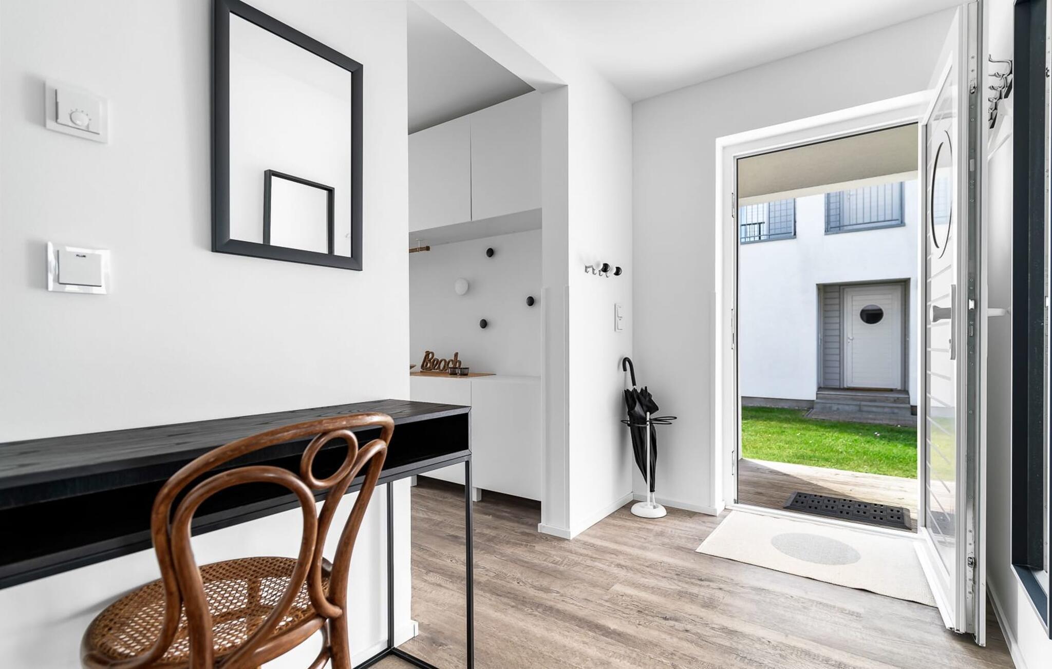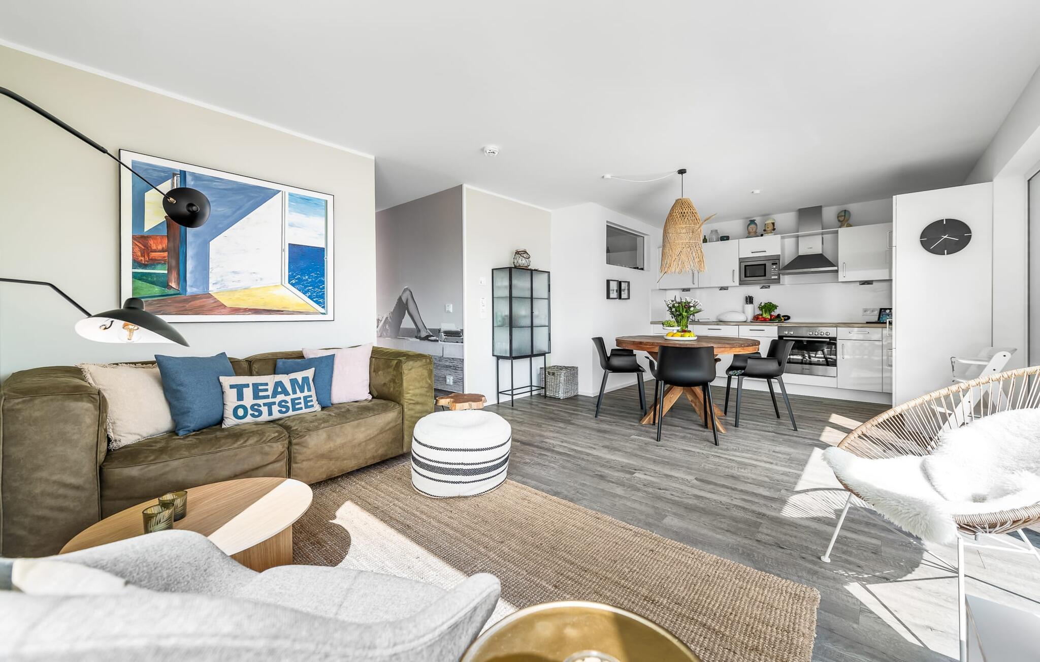 Denne ferieboligen i første etasje ligger på en smal odde mellom Østersjøfjorden Schlei og seil- og sportsbåthavnen OstseeResort Olpenitz, og har en fantastisk utsikt over vannet og sol hele dagen på den sydvendte terrassen. Østersjøferiestedets egen hvite sandstrand ligger bare noen minutters gange unna, og det grønne området rundt huset innbyr til soling, lek og opphold. Dette er ferie!