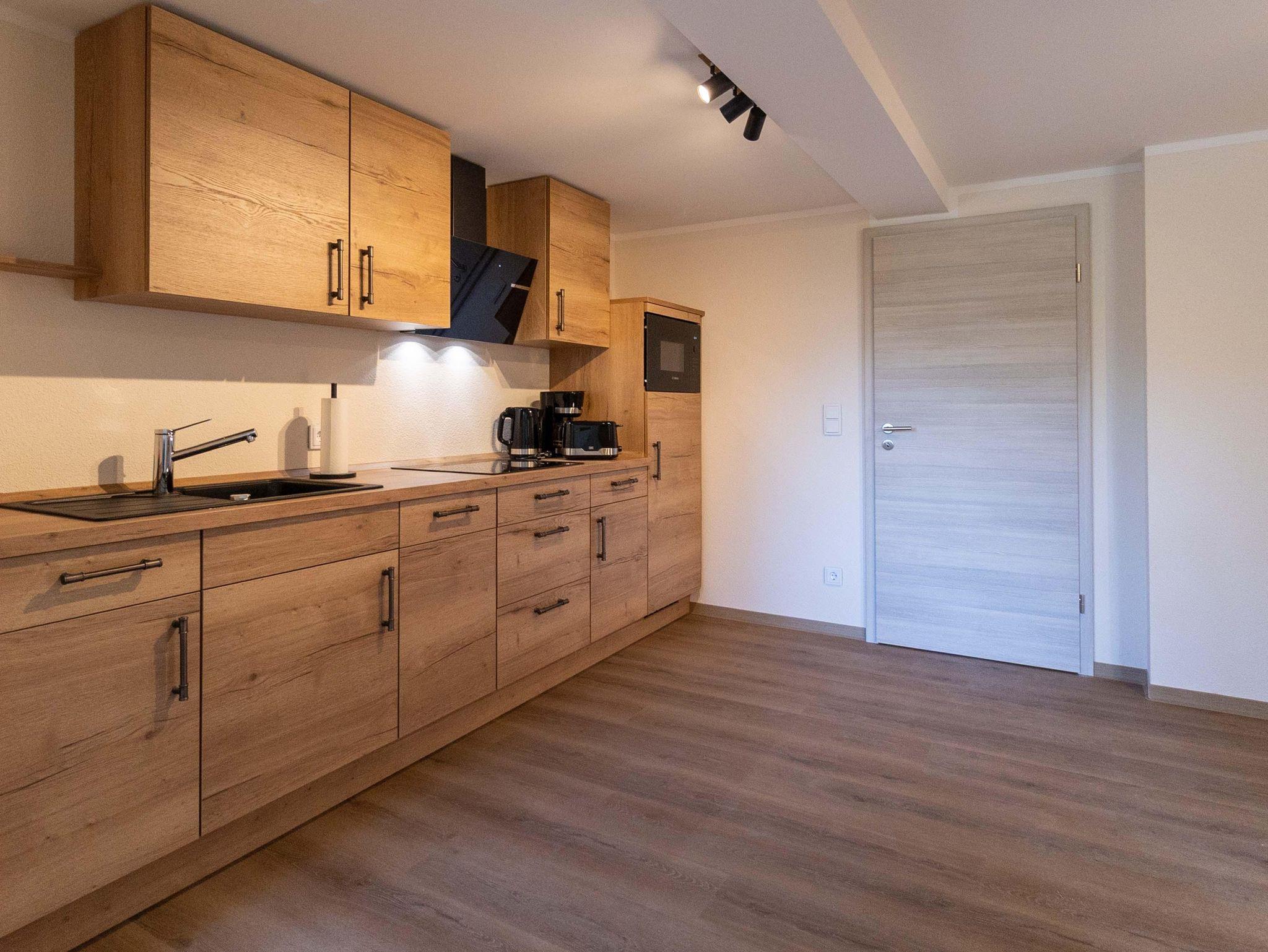 Diese helle und freundliche Ferienwohnung bietet Platz für bis zu 4 Personen und ist damit perfekt für Familien. Sie verfügt über eine komplett ausgestattete Wohnküche mit Geschirrspüler, 4-Zellen-Herd, Mikrowelle, Kaffeemaschine, Wasserkocher, Kühlschrank (ohne Gefrierzelle) und Toaster, ergänzt durch das nötige Kücheninventar. Am Esstisch mit vier Stühlen können Sie gemeinsam speisen oder Spieleabende verbringen. Der Wohnbereich lädt mit einem gemütlichen Sofa, Couchtisch und TV-Gerät zum Entspannen ein.