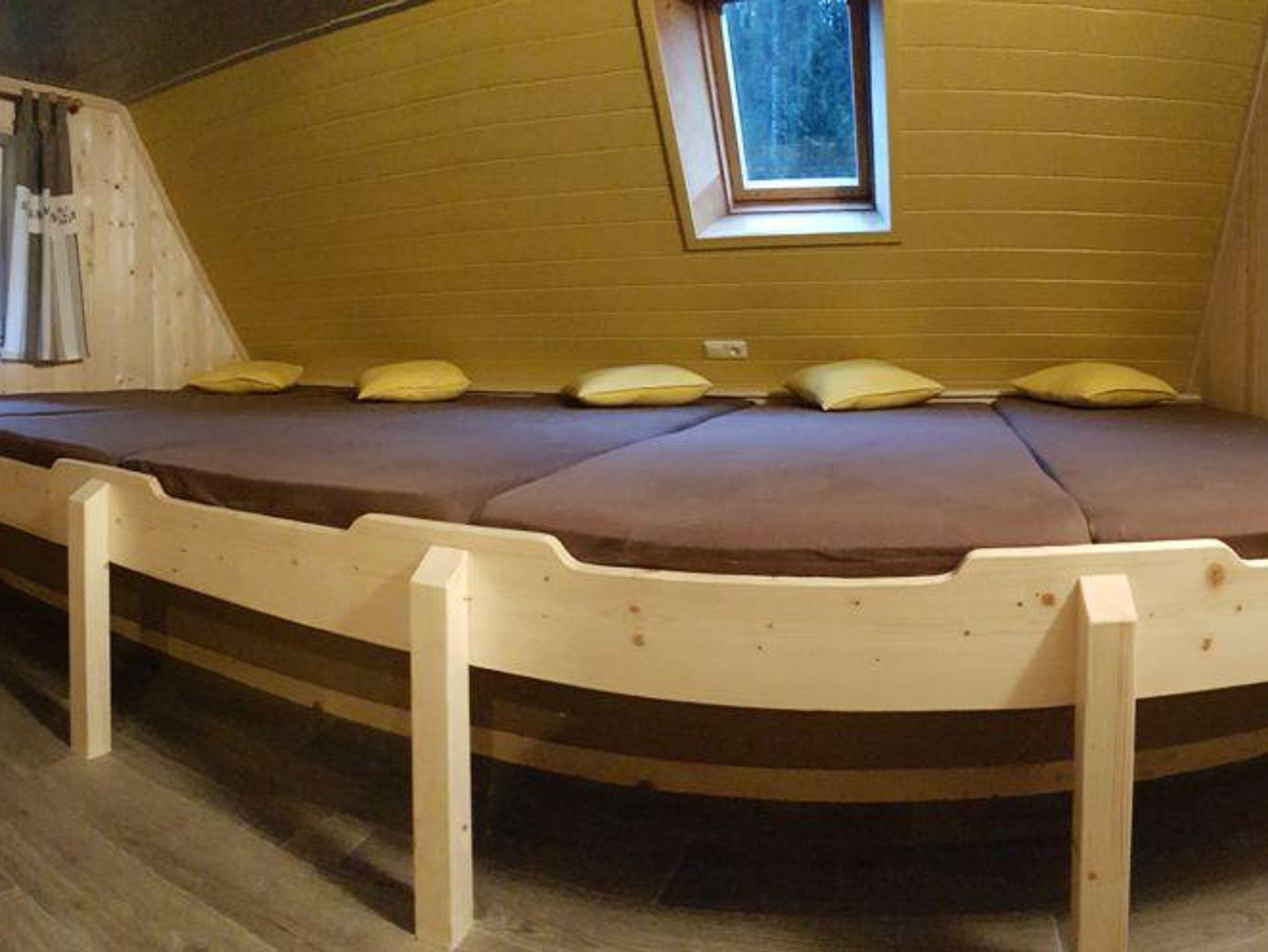 Im Obergeschoss befinden sich drei Schlafräume, die als Betten- oder Matratzenlager genutzt werden können. Hier gibt es viel Stauraum, eine gemütliche Sitz- und Spielecke und Toiletten.