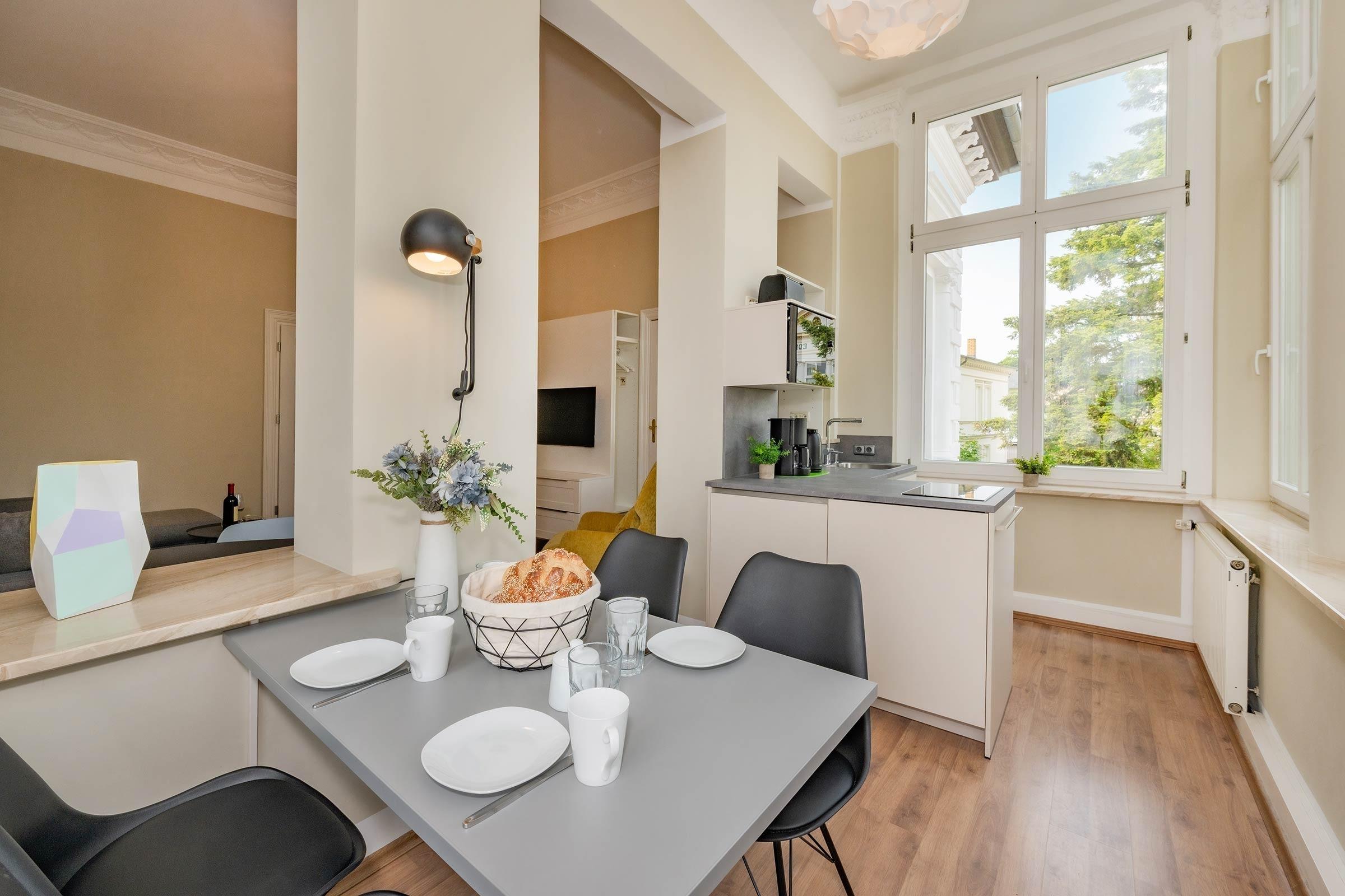 Das Apartment "Waterblick" in der Villa Carmen in Seebad Ahlbeck öffnet seine Türen zu einem Raum, wo Eleganz und Komfort auf magische Weise zusammentreffen. Mit einer Fläche von 50 m², gelegen in den oberen Etagen der Villa, bietet "Waterblick" einen spektakulären Rückzugsort, der sorgfältig konzipiert wurde, um ein unvergleichliches Erlebnis zu bieten. Haustiere sind hier nicht erlaubt und das Rauchen ist untersagt, was für eine ruhige und saubere Atmosphäre sorgt.