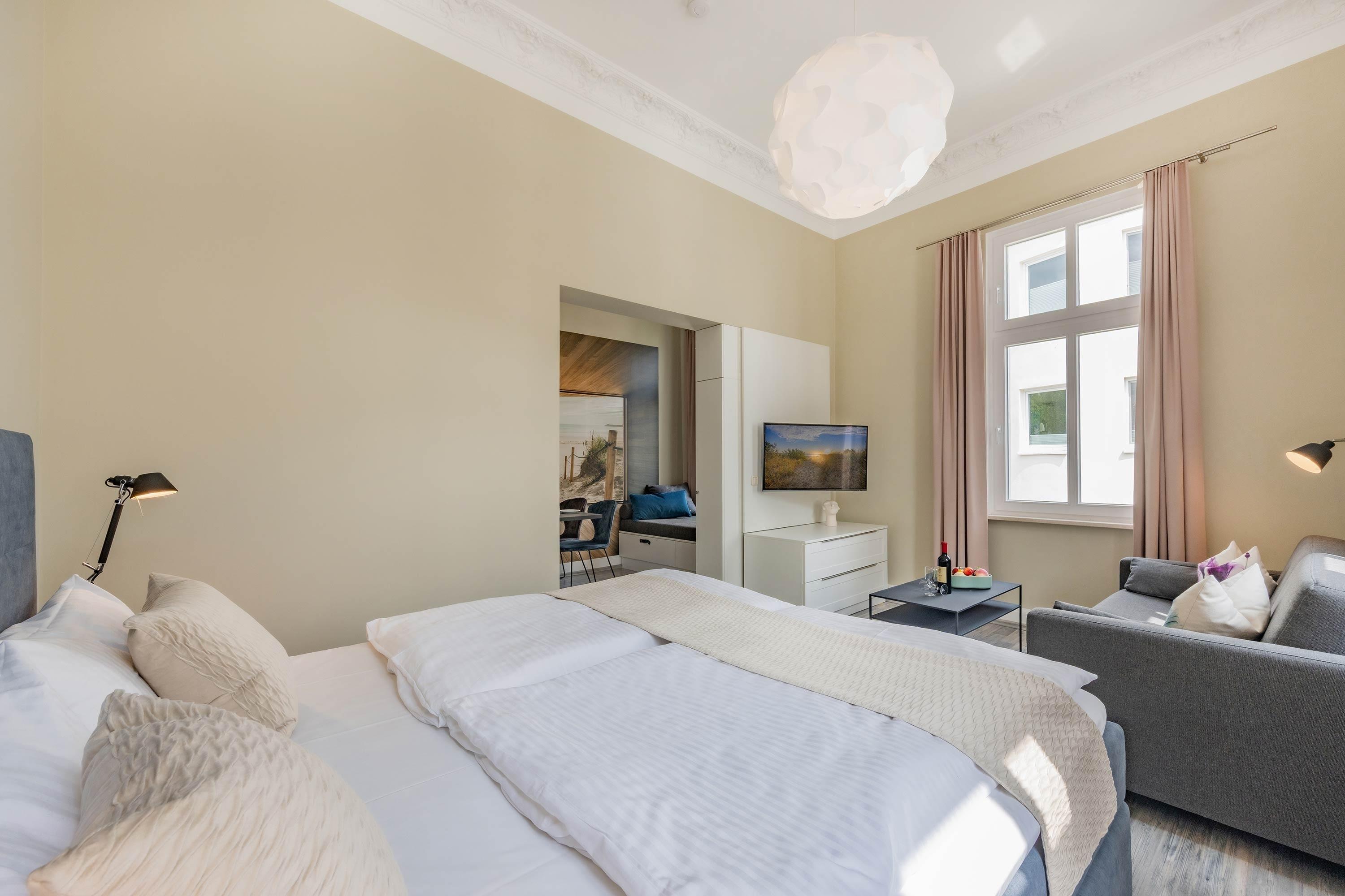Das Apartment "Sanddüne" in der malerischen Villa Carmen in Seebad Ahlbeck verkörpert einen gehobenen Lebensstil und exklusiven Komfort. Auf 45 Quadratmetern, gelegen in den oberen Etagen der Villa, kombiniert dieses Apartment eleganten Stil und modernen Luxus, um eine einzigartige Wohnumgebung zu schaffen. Als ein Ort, der sowohl Raffinesse als auch Ruhe ausstrahlt, ist das "Sanddüne" ein Nichtraucherapartment, und auch Haustiere sind nicht erlaubt, um eine saubere und ruhige Atmosphäre sicherzustellen.