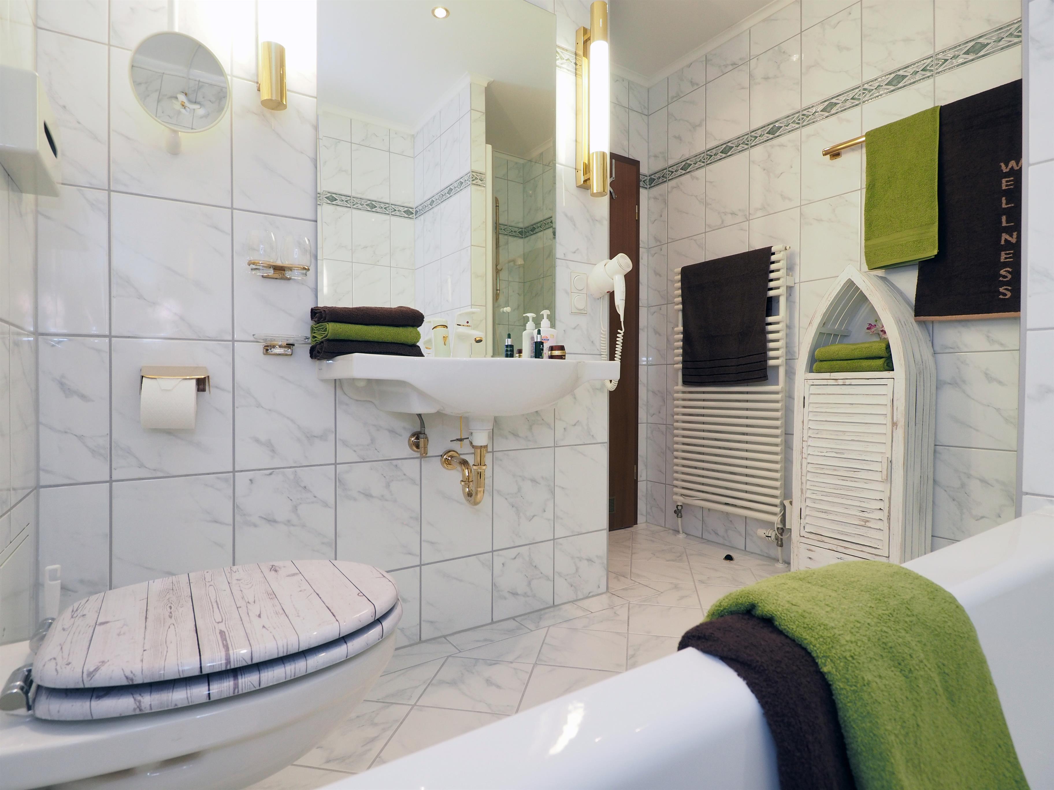 Im Schlafzimmer erwartet Sie ein Doppelbett mit einer Kingsize-Boxspringmatratze (B180xL200xH24), um Ihnen geruhsame Nächte zu bescheren. Ein zusätzlicher Fernseher im Schlafzimmer ermöglicht entspannte Stunden vor dem Einschlafen. Das gut ausgestattete Badezimmer bietet ein verwöhnendes Ambiente mit einer Badewanne, einer Echtglasdusche, einem stilvollen Waschtisch und einem WC. Zudem steht Ihnen ein separates Gäste-WC zur Verfügung.