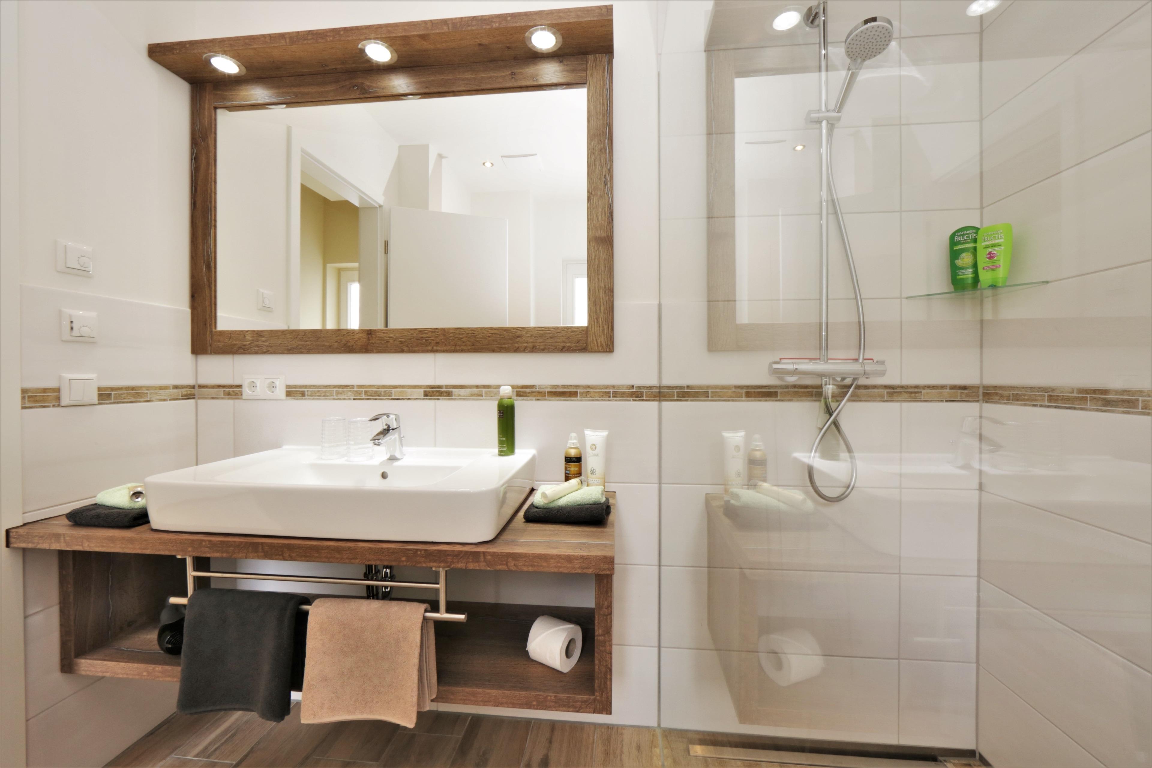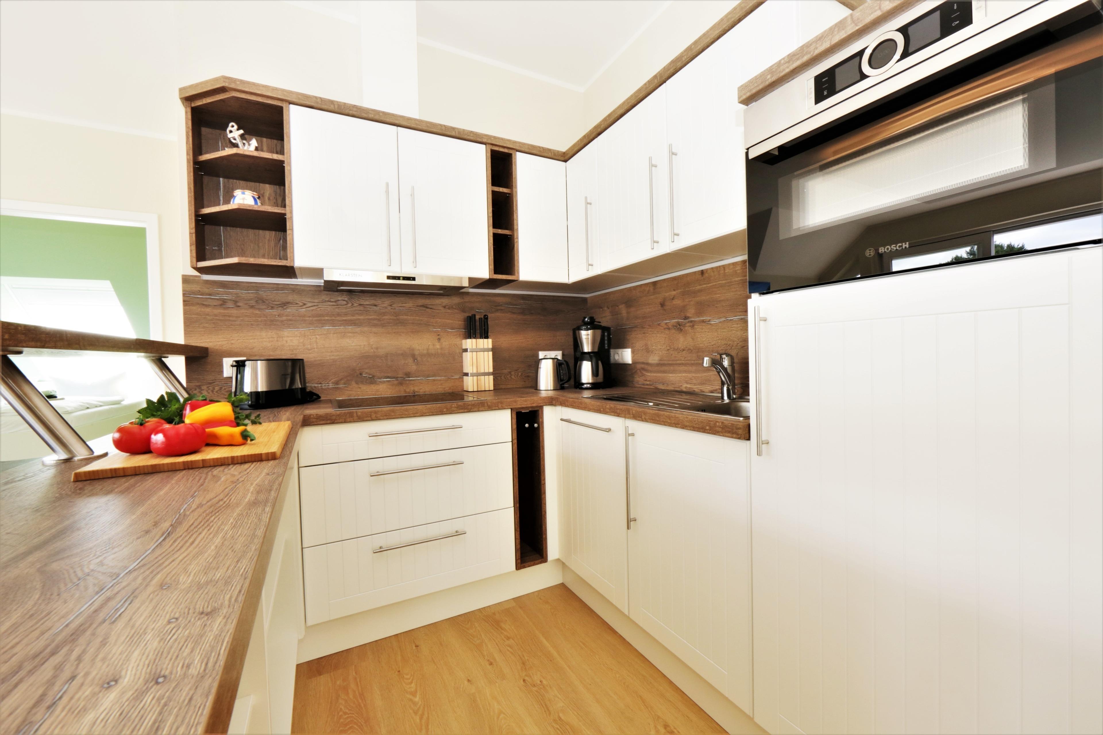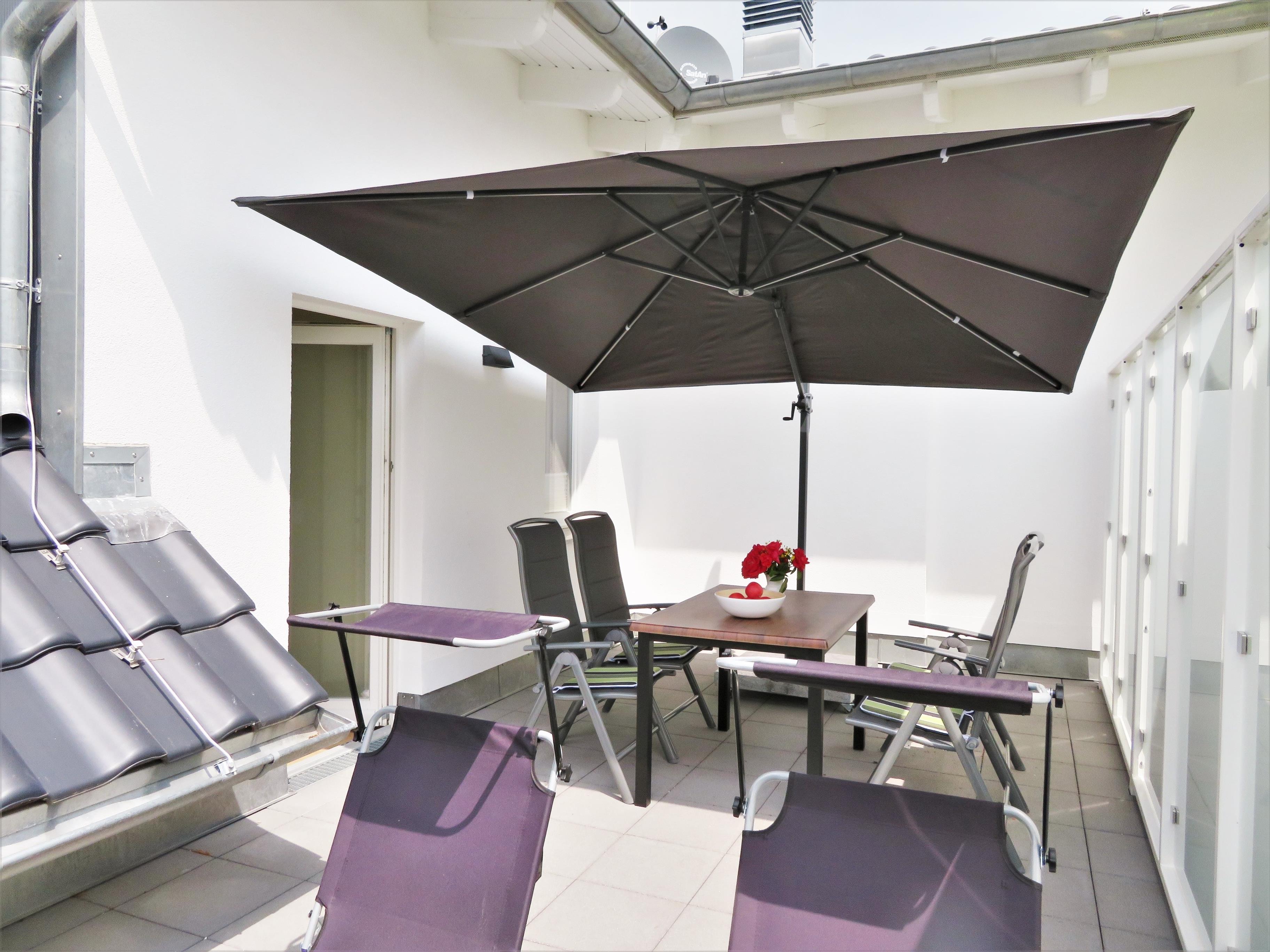 Dieses mit 90 qm sehr großzügige 3-Zimmer Appartement befindet sich im Dachgeschoss der 2018 neu erbauten Strandresidenz und bietet 4-6 Personen reichlich Komfort und ist selbstverständlich per Fahrstuhl zu erreichen. Genießen Sie Ihren Urlaub direkt am Meer in dieser hochwertig und sehr geschmackvoll eingerichteten Wohnung. Im Wohnbereich mit großer Fensterfront erwartet Sie eine bequeme Polstergarnitur bestehend aus Sofa und Sessel, ein Couchtisch und Flat TV sowie ein Esstisch für gemeinsame Mahlzeiten. Ein Kamin (gasbetrieben) sorgt für Gemütlichkeit und zusätzliche Wärme bei Bedarf. Die moderne offene Küche mit Tresen und Barhockern ist mit Cerankochfeld, Backofen mit integrierter Mikrowelle, Geschirrspüler, Kühlschrank, Kaffeemaschine etc. ausgestattet. Beide Schlafzimmer verfügen jeweils über ein extra großes komfortables Doppelbett mit getrennten Matratzen (90 x 220), reichlich Schrankraum sowie einen eigenen TV. Aus einem der beiden Schlafzimmer können Sie einen Blick auf die Ostsee genießen. Den großen Balkon in Süd-West-Ausrichtung betreten Sie vom Wohnraum. Auf der windgeschützten Dachterrasse (ebenfalls Süd-West-Ausrichtung) können Sie bei entsprechendem Wetter sommerliche Sonnentage bereits ab März bis in den November hinein genießen. Sitzgelegenheiten und Sonnenliegen sind vorhanden. Beide Badezimmer sind mit einer bodengleichen Dusche mit Echtglasabtrennung und Waschtisch/WC ausgestattet. Zur Ausstattung gehören jeweils ein Fön und Fußbodenheizung.