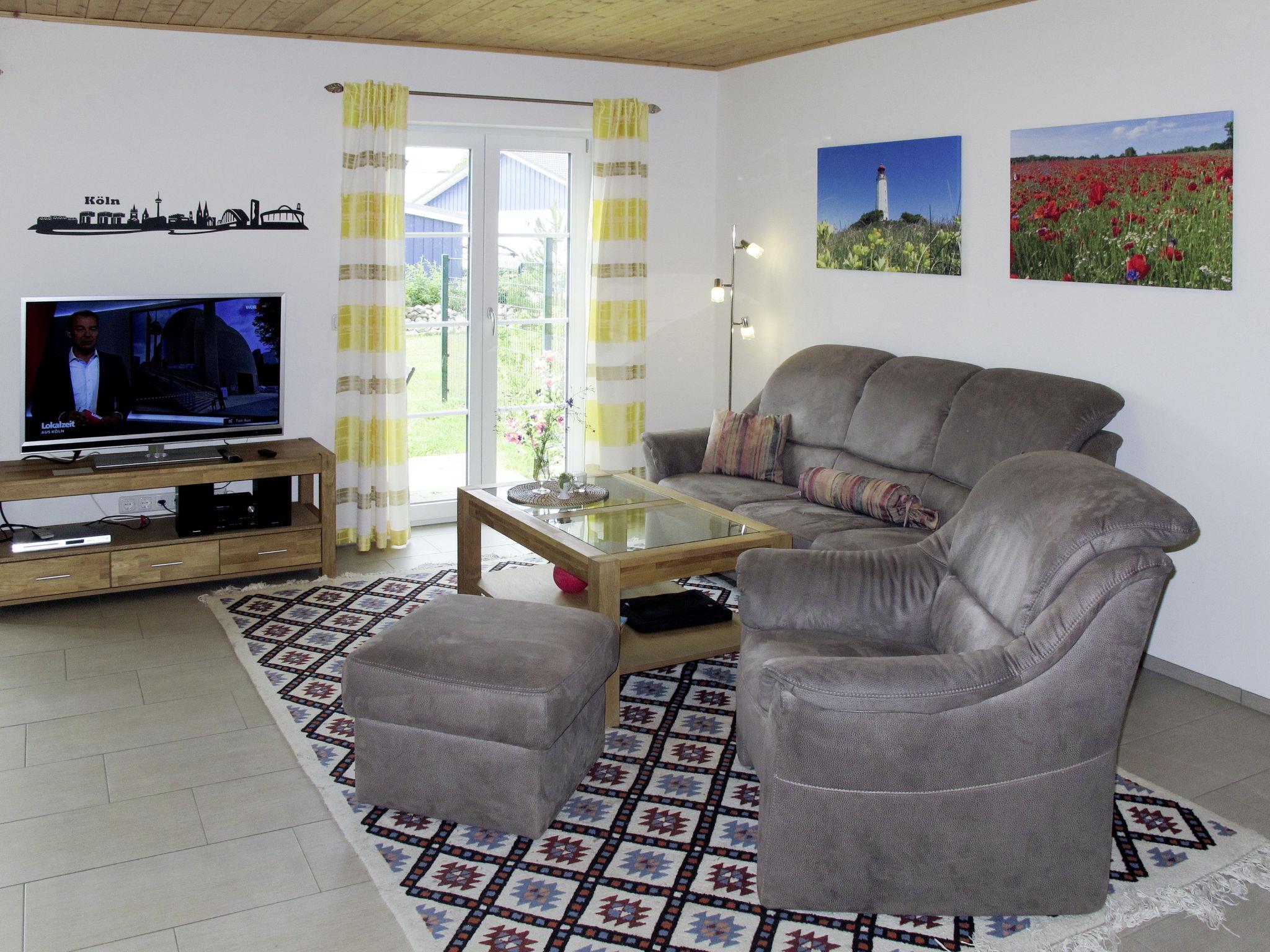 "Rügenperle", 3-room semi-detached house 85 m2 on 2 levels. Comfortable and cosy furnishings: living/dining room with Scandinavian wood stove, satellite TV, radio, CD-player and DVD. Exit to the terrace. Kitchenette (oven, dishwasher, 4 ceramic glass hob hotplates, toaster, kettle, microwave, electric coffee machine). Shower/WC. Upper floor: 1 double bedroom with sloping ceilings with satellite TV. 1 room with sloping ceilings with 2 beds. Shower/WC. Gas heating, underfloor heating. Terrace, south-west facing position. Terrace furniture, barbecue (portable). Facilities: washing machine, children's high chair, baby cot. Internet (WiFi, free). Please note: non-smoking house. Maximum 1 pet/ dog allowed. Smoke alarm. Bookings accepted for holiday purposes only.