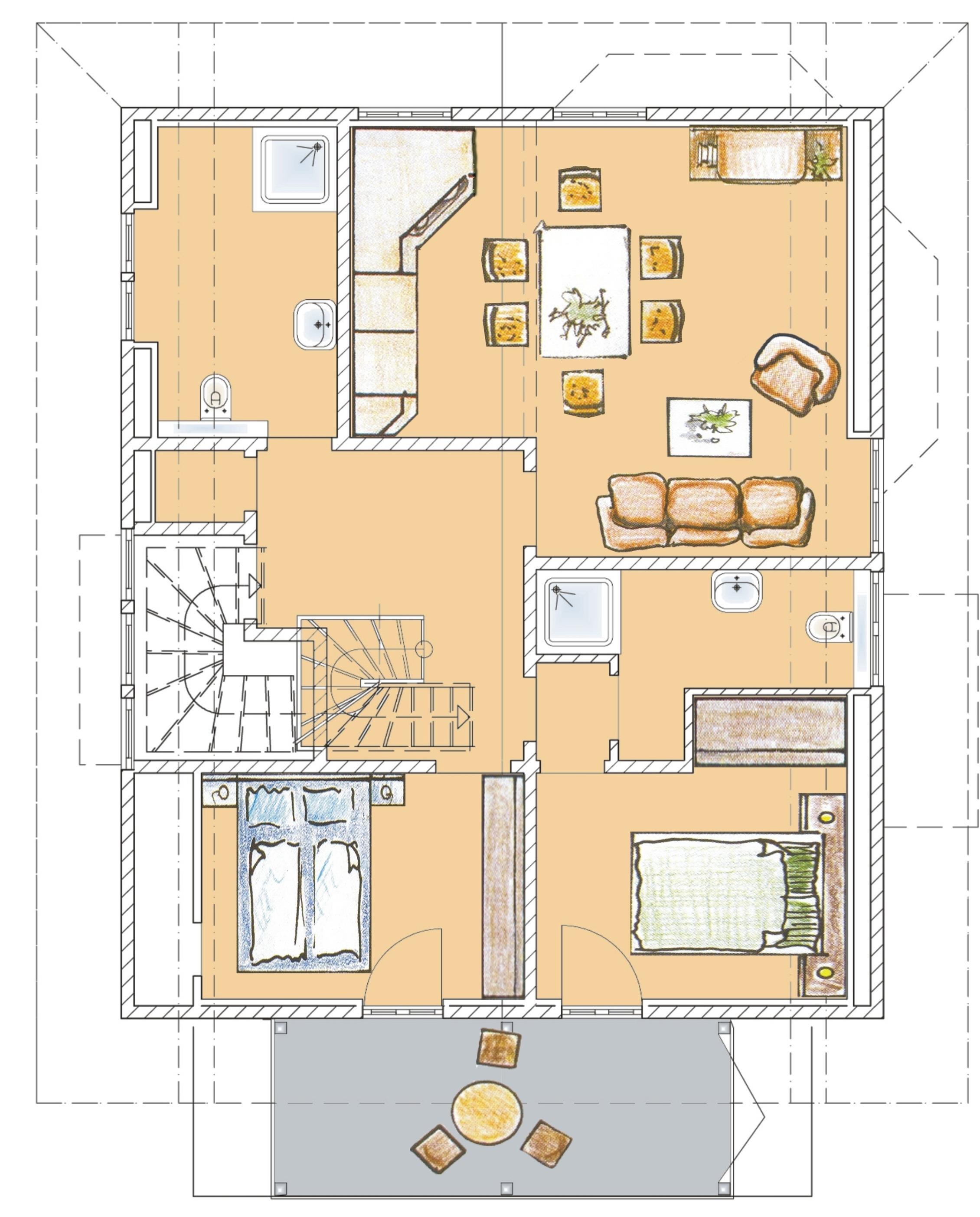 Diese 105 qm große Nichtraucher-Ferienwohnung erstreckt sich über das 2. Ober- sowie das Dachgeschoss und bietet 4 Erwachsenen und zwei Kindern viel Platz für einen erholsamen Urlaub. Diese Wohnung besticht durch ihren herrlichen Blick auf die Ostsee und einen zusätzlichen Südbalkon. Der großzügige, helle Wohnraum mit Seeblick ist mit einer gemütlichen Sitzecke mit TV und integriertem Radio sowie dem Essplatz für 6 Personen eingerichtet. Die gut ausgestattete, moderne Vollküche mit Geschirrspüler, Backofen, Cerankochfeld ist offen im Wohnraum integriert. Beide Schlafzimmer im unteren Wohnbereich sind mit einem Doppelbett mit getrennten Matratzen und ausreichend Schrankraum ausgestattet. Zwei Bäder mit Dusche und WC stehen Ihnen zur Verfügung, beide mit einem Fenster ausgestattet. Von beiden Schlafzimmern haben Sie Zugang zu einem gemeinsamen, großen, zum Innenhof liegenden Südbalkon, der den ganzen Tag Sonne verspricht. Für die Kinder befinden sich im Dachgeschoss 2 separate Schlafzimmer mit jeweils einem Einzelbett. Eines der beiden Schlafzimmer ist mit einem zusätzlichen Fernseher ausgestattet.