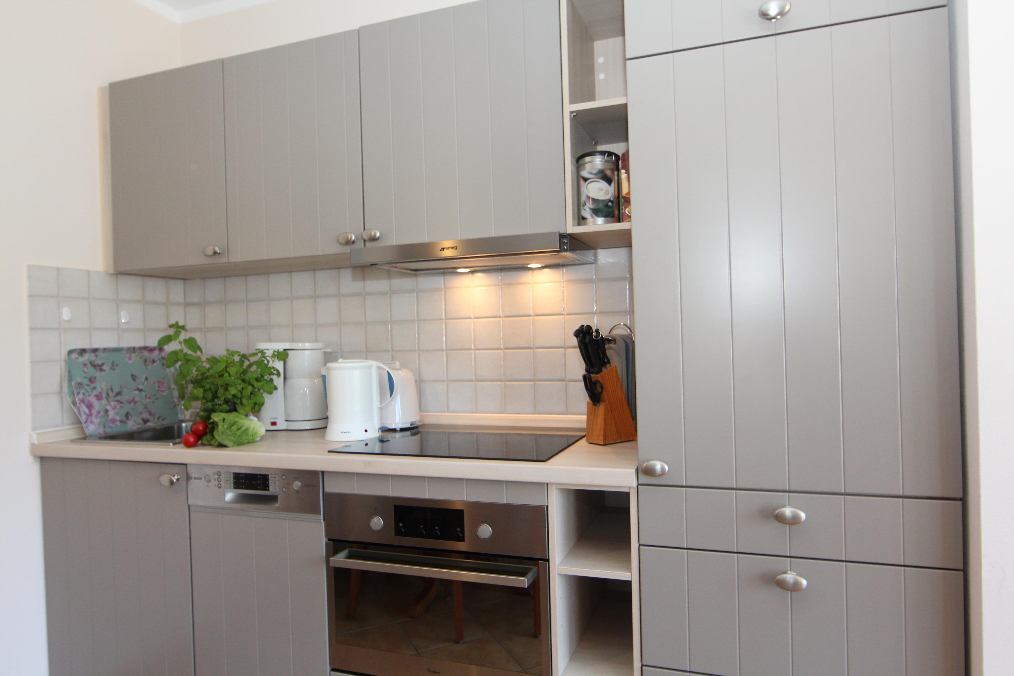 Dieses 60 qm große 3-Zimmer Appartement im 1. Obergeschoss eignet sich für 2 bis 4 Personen. Im Wohnzimmer finden Sie eine gemütliche Couchecke mit Radio/TV, sowie einen separaten Essplatz. Die Vollküche mit Geschirrspüler, Ceranfeld, Backofen pp. ist ebenfalls offen im Wohnraum integriert. Der zum Süden ausgerichtete Balkon ist vom Wohnraum zu begehen. Das größere Schlafzimmer ist mit einem Doppelbett mit getrennten Matratzen, das kleinere mit zwei Einzelbetten jeweils 0,90 x 2,00 m und einem Kleiderschrank ausgestattet. Das Bad bietet Dusche, sowie Badewanne und einen Doppelwaschtisch. Das WC mit Waschgelegenheit ist separat. Der Pkw-Stellplatz befindet sich auf dem Grundstück und ist der Wohnung zugeordnet. Im Keller finden Sie einen Fahrrad-Abstellraum, Münzwaschmaschine und Münztrockner.