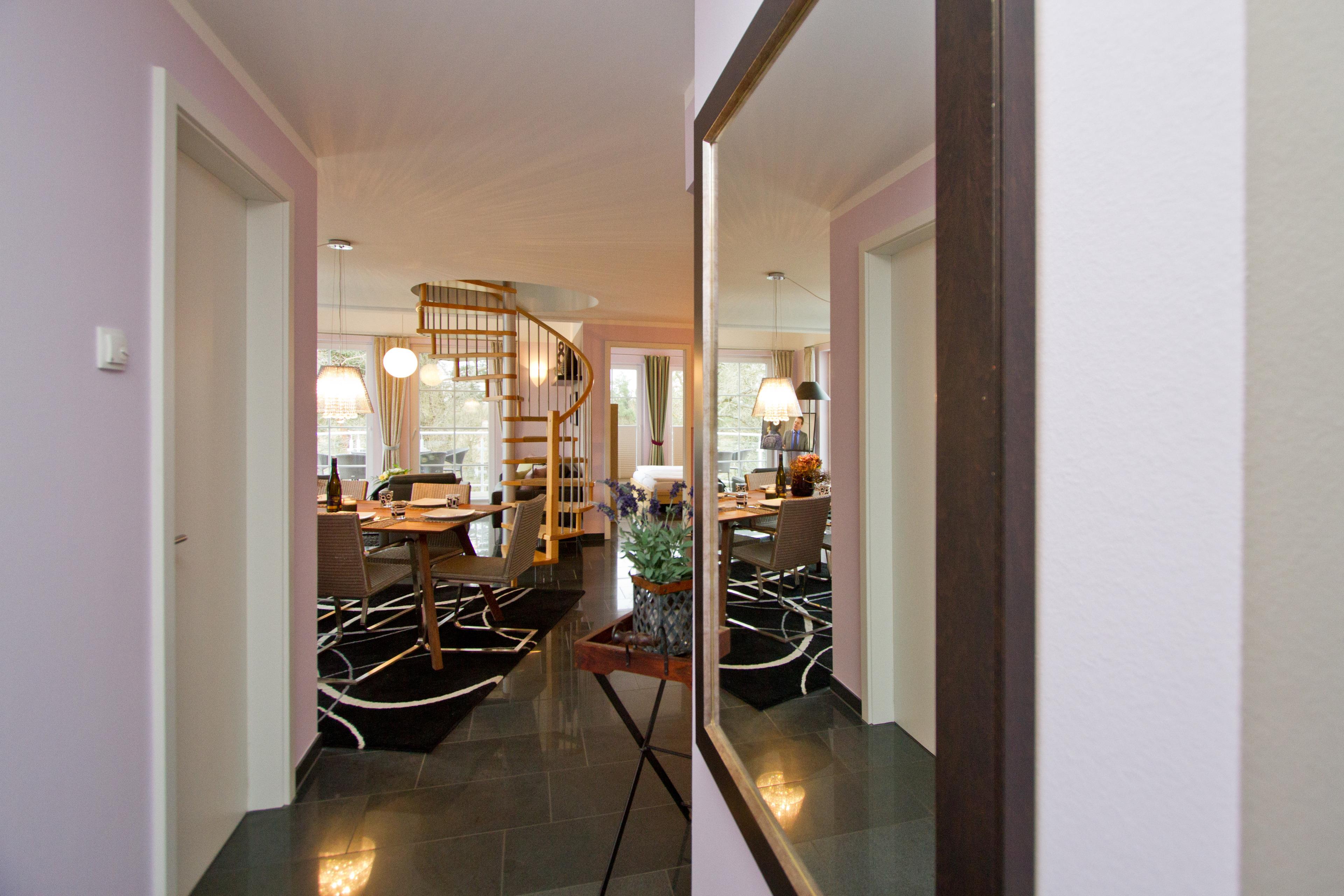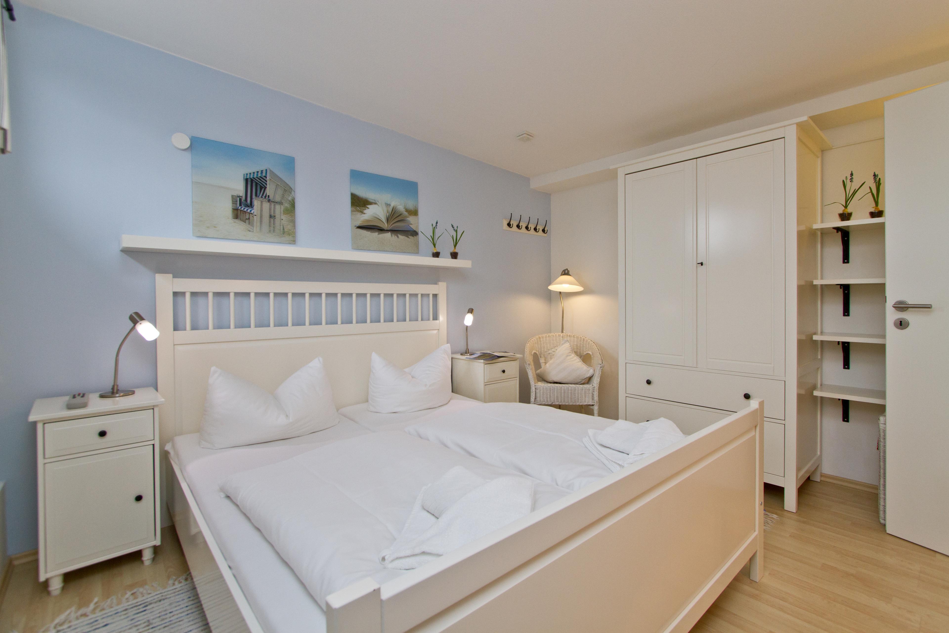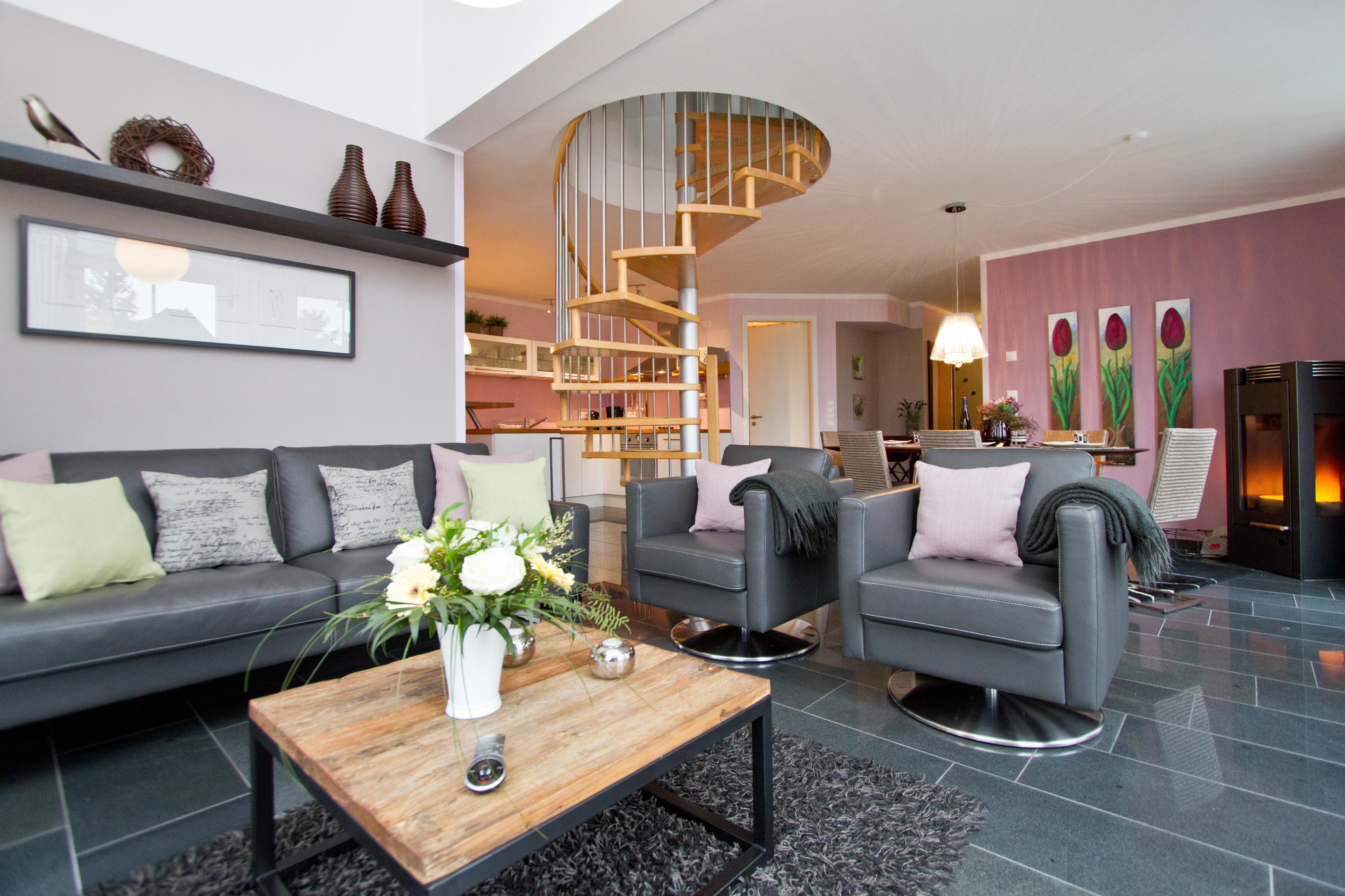 Dieses komfortable und geschmackvoll eingerichtete 4-Zimmer Appartement bietet auf 108 m², verteilt auf zwei Ebenen, viel Platz für einen erholsamen Urlaub am Meer. 4 Erwachsene und 2 Kinder (bis 14 Jahre) finden hier das perfekte Urlaubsdomizil für die ganze Familie oder Freunde. Die ganzjährige Nutzbarkeit des sehr großzügigen Wellnessbereiches trägt ebenfalls zum Erholungswert für die Gäste bei – und das zu jeder Jahreszeit. Der moderne Wohnbereich mit viel Fensterfläche ist mit einer bequemen Sitzgarnitur, Couchtisch, Flat-TV und einem großzügigen Essplatz für gemeinsame Mahlzeiten eingerichtet. An kühleren Tagen sorgt der Kamin zusätzlich für Gemütlichkeit und behagliche Wärme. Die Küche mit Cerankochfeld, Backofen, Mikrowelle, Geschirrspüler, Kühlschrank etc. ist offen im hinteren Wohnbereich integriert. Eines der Highlights dieser Wohnung sind die zwei Balkone, die beide vom Wohnraum zu begehen sind. Der Ostbalkon lockt die Gäste schon zum Frühstück ins Freie, der Südbalkon verspricht viele entspannende Sonnenstunden und einen schönen Blick in den Gartenbereich. Ebenfalls im 3. Obergeschoss steht den Gästen ein Schlafzimmer mit Doppelbett, reichlich Schrankraum und einem zusätzlichen TV zur Verfügung. Das Bad auf der unteren Ebene ist mit einer Dusche mit Echtglasabtrennung und Waschtisch/WC ausgestattet. Über eine Wendeltreppe aus dem Wohnbereich erreichen Sie das 4. Obergeschoss mit zwei weiteren abgeschlossenen Schlafzimmern. Das größere Schlafzimmer ist ähnlich wie das untere mit einem Doppelbett, Kleiderschrank und zusätzlichem TV eingerichtet. Das kleinere Schlafzimmer bietet zwei Kindern ein ausziehbares Doppelbett und einen Kleiderschrank. Im oberen Bereich steht den Gästen ein großzügiges Bad mit Badewanne (mit Duschabtrennung) und Waschtisch/WC zur Verfügung. Einen Pkw-Stellplatz in der hauseigenen Tiefgarage können die Gäste nutzen. Mitgebrachte Fahrräder können sicher im Fahrradkeller abgestellt werden.