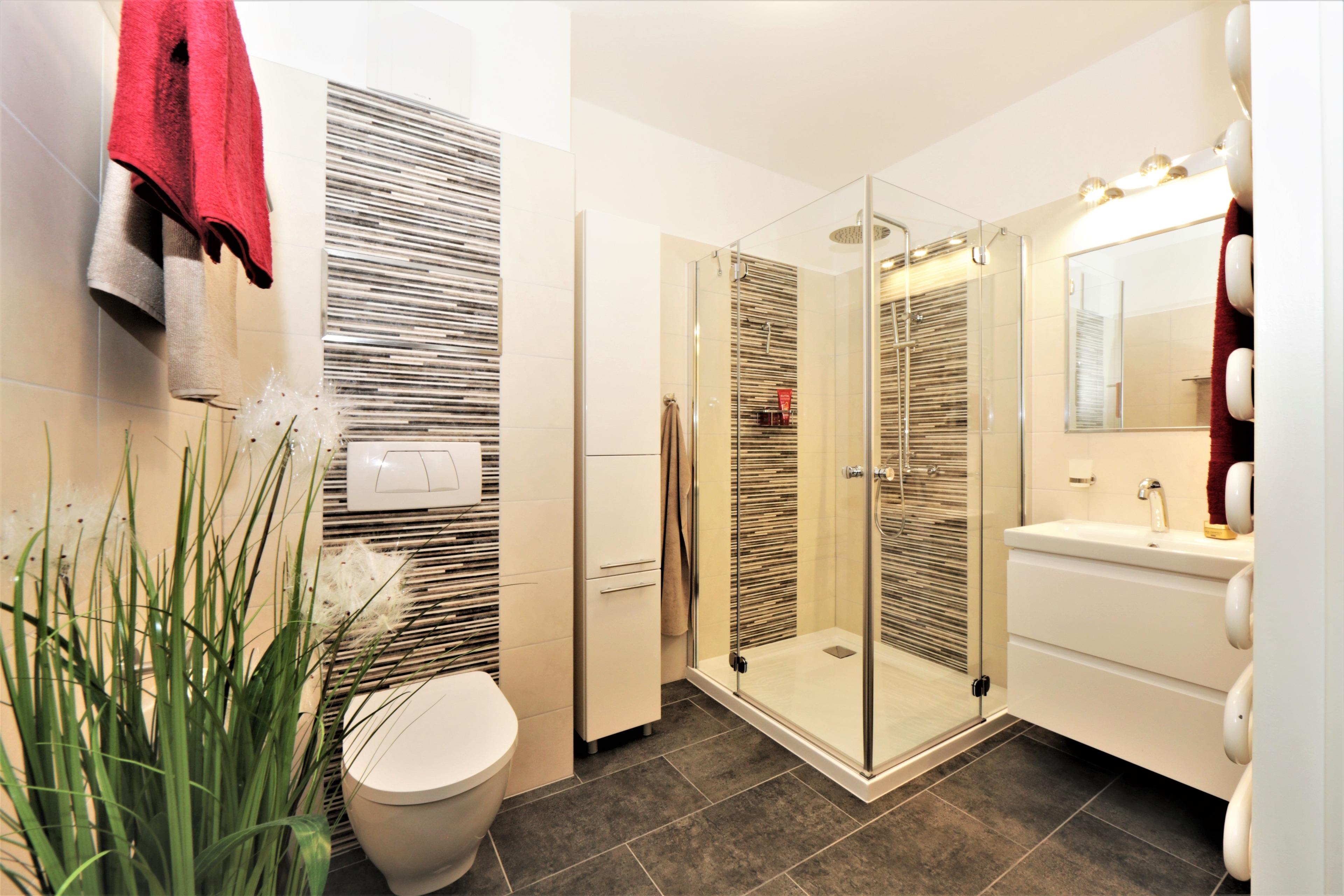 Dieses 64 qm große 2 Zimmer Appartement liegt im 1. Obergeschoss und eignet sich für 2-4 Personen. Der großzügige Wohnbereich bietet Ihnen eine Wohnlandschaft mit großem Flat-TV. Eine weitere Couch, die auch einer Person einen Schlafplatz bietet (Liegefläche 120 x 190) lädt zum Relaxen ein. Vom Wohnzimmer gelangen Sie auf den sonnigen Balkon zur Labahnstraße mit östlicher Ausrichtung. Ein Esstisch befindet sich in der Diele. Die separate Küche verfügt über Geschirrspüler, Kühlschrank, Kochfeld, Backofen, Mikrowelle etc. Das großzügige Schlafzimmer ist mit einem Doppelbett mit getrennten Matratzen (90 x 200), reichlich Schrankraum sowie einer kleinen Sitzecke und einen zusätzlichen TV eingerichtet. Das innenliegende Bad ist mit Waschtisch/WC und einer Dusche ausgestattet. Ein Pkw-Stellplatz steht Ihnen auf dem Grundstück zur Verfügung.