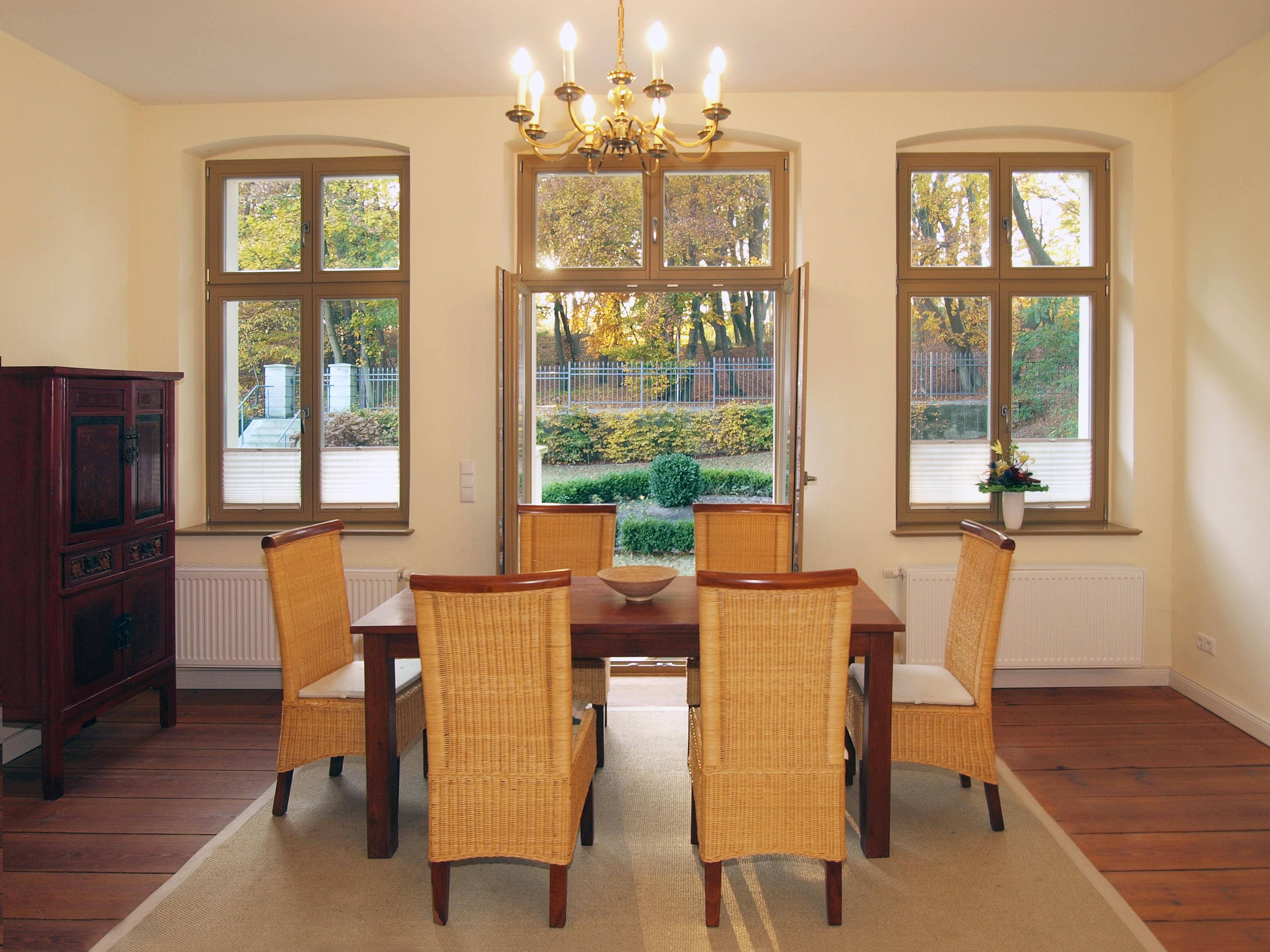 Eine Waschmaschine ist gegen Gebühr nutzbar und befindet sich im Erdgeschoss gleich links nach Betreten der Villa. Ihre eigenen oder geliehenen Fahrräder können Sie in einem offenen Fahrradständer abstellen. Gästen der Ferienwohnungen 2 & 4 steht auch ein separater, abschließbarer Fahrradschuppen zur Verfügung.