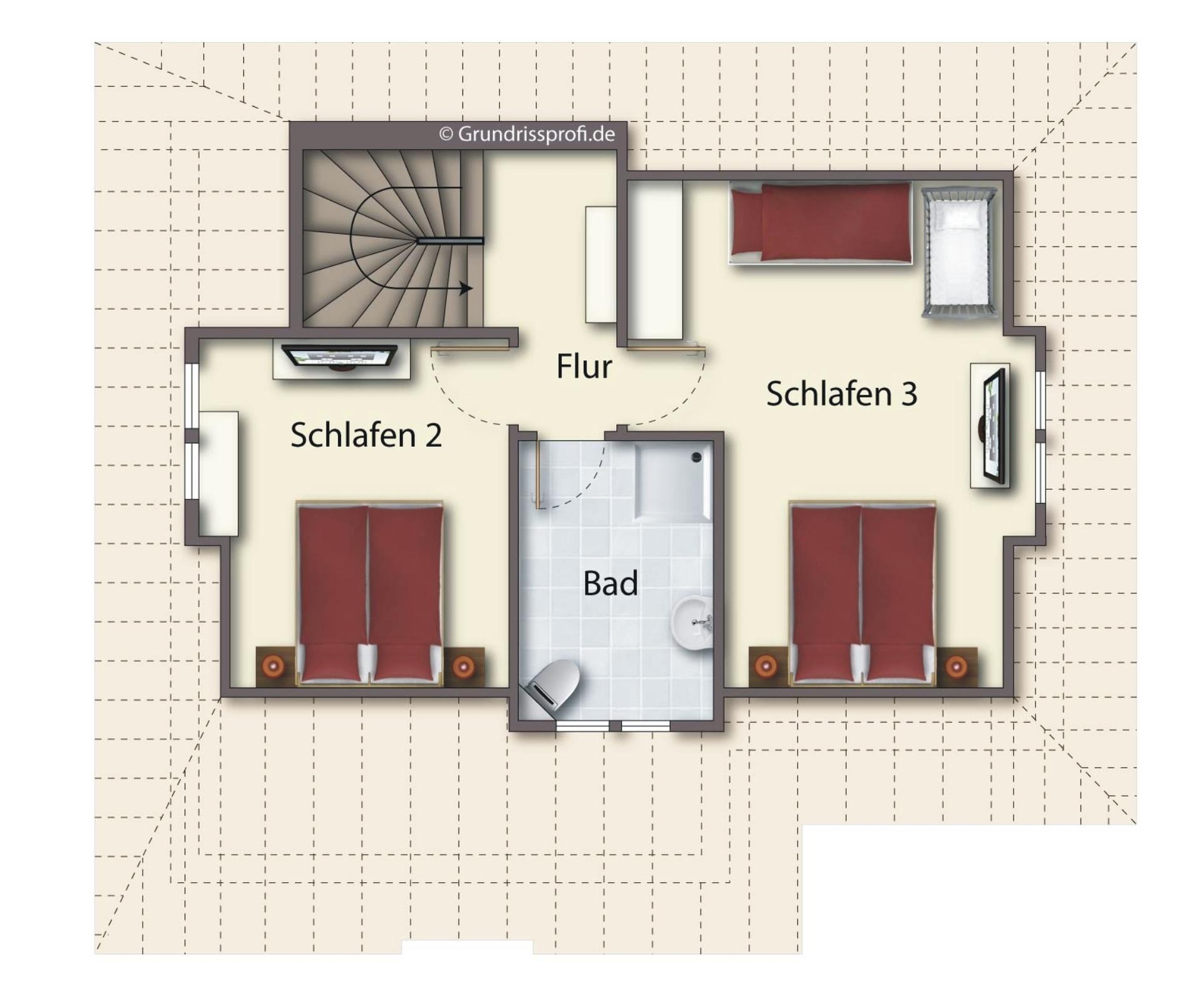 Das kleinere Schlafzimmer im Obergeschoss ist ebenfalls freundlich und einladend gestaltet und eignet sich perfekt als Rückzugsort für weitere Gäste.