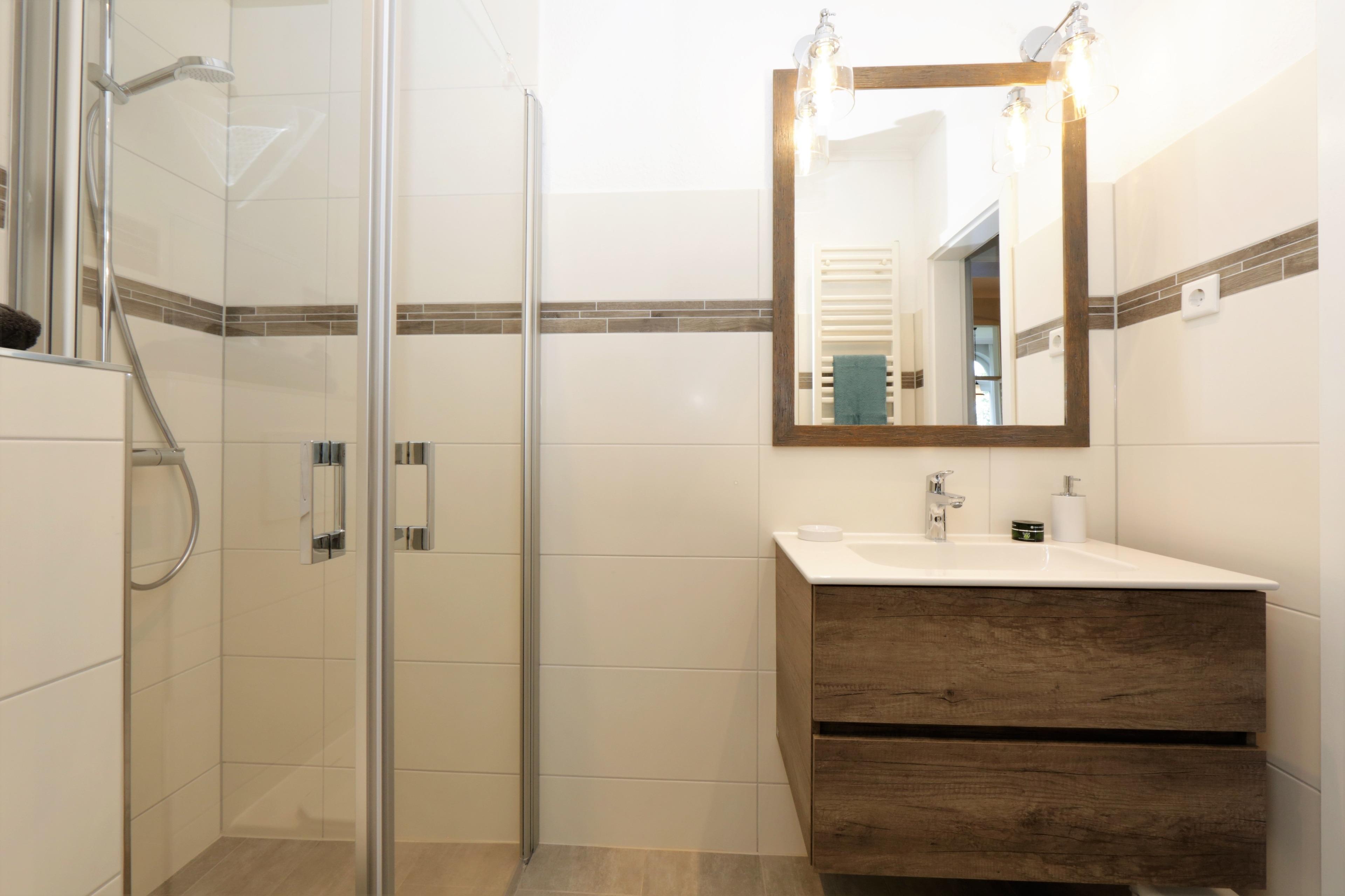 Eine Waschmaschine und ein Trockner sind im Keller (Seiteneingang) vorhanden. Ihre eigenen oder geliehenen Fahrräder können Sie auf dem Grundstück in einem abschließbaren Fahrradschuppen geschützt unterbringen.