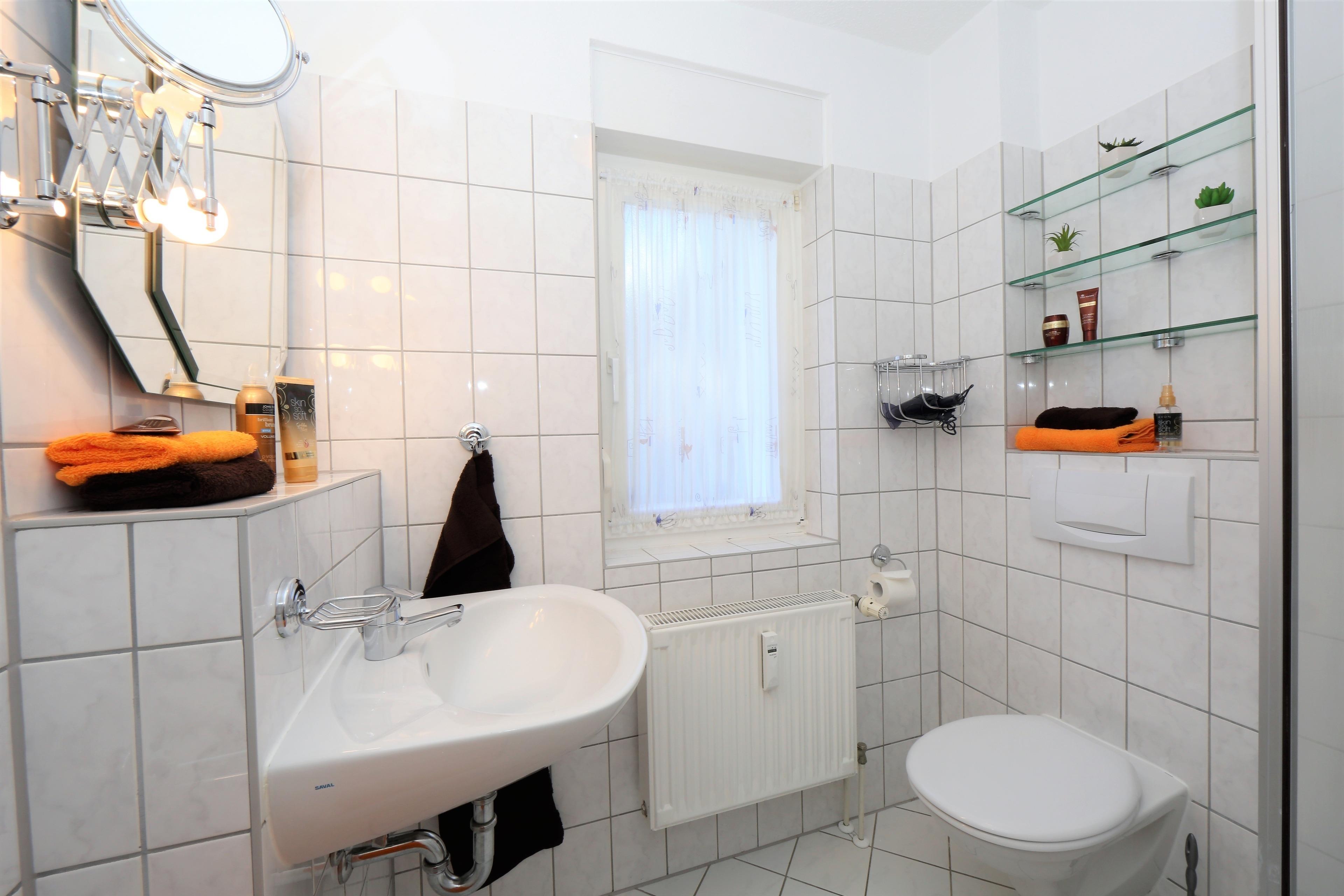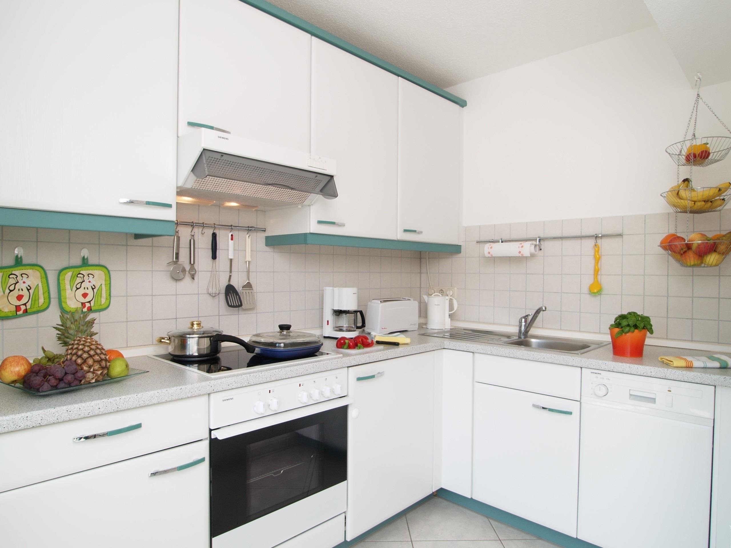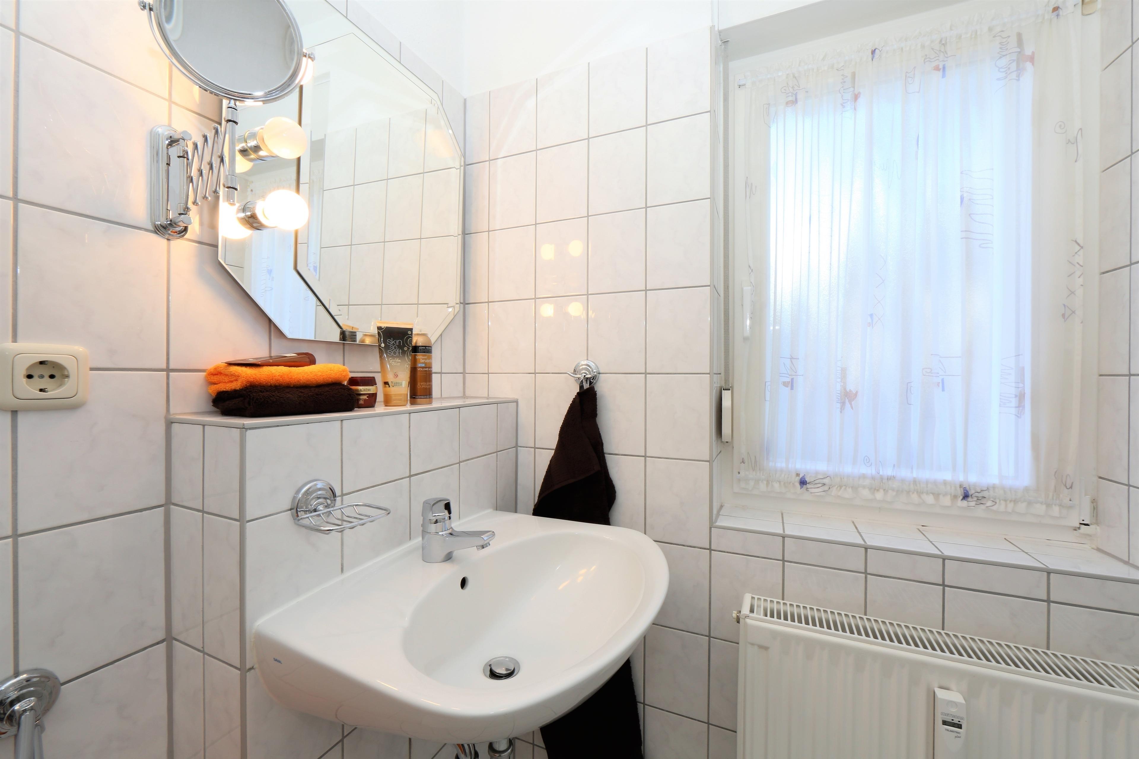 Das Schlafzimmer, ebenfalls zur Meerseite gerichtet, ist mit einem Doppelbett mit getrennten Matratzen (90x200), Nachtschränken und ausreichend Schrankraum ausgestattet. Die separate Küche ist mit Geschirrspüler, Kochfeld, Backofen p.p. ausgestattet und verfügt zusätzlich über einen sonnigen Balkon, der zu den Mahlzeiten einlädt. Ein Duschbad rundet diese Wohnung ab. Im Keller finden Sie einen Fahrradraum sowie Waschmaschine und Trockner. Der Pkw-Stellplatz befindet sich auf dem abgeschlossenen Grundstück und ist der Wohnung zugeordnet.