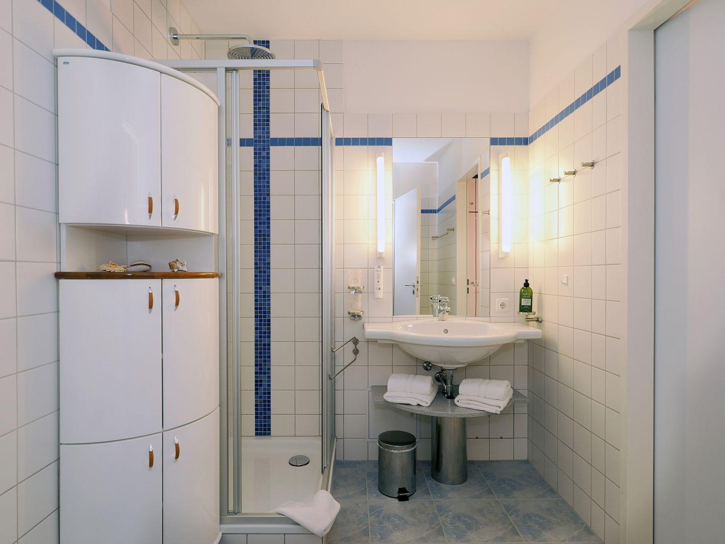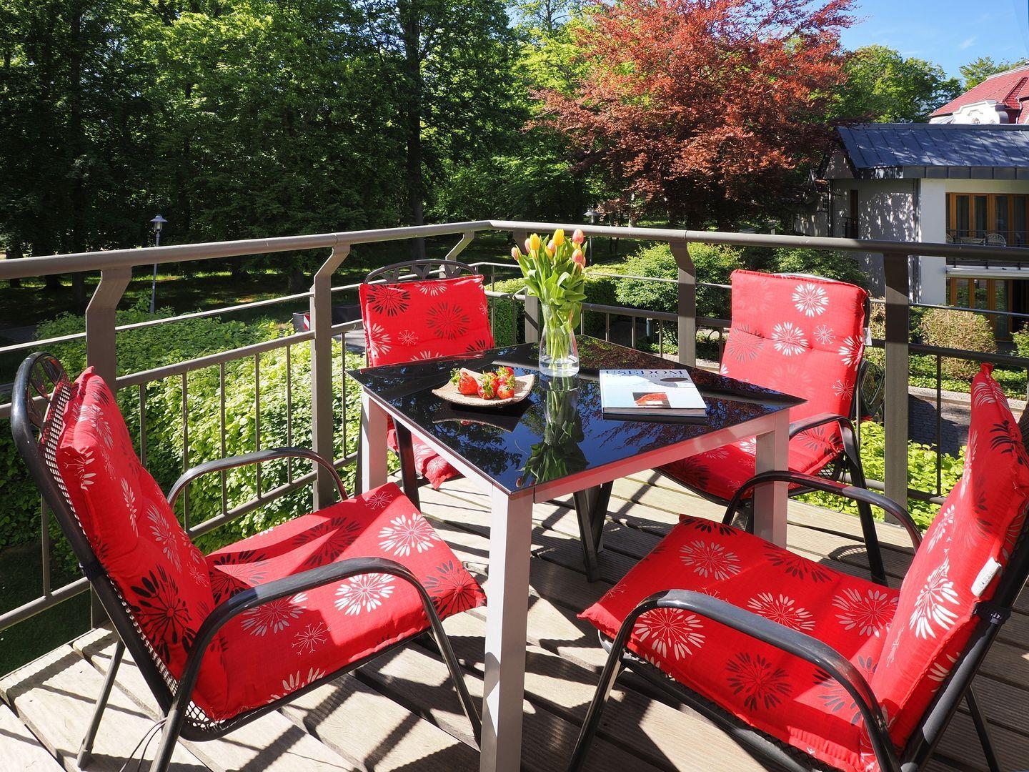 Dieses stilvoll eingerichtete Appartement überzeugt mit einem privaten Balkon. Die Wohnung befindet sich in Richtung Parkseite und verfügt über einen seitlichen Ostseeblick Die Küche ist voll ausgestattet und bietet neben einem Backofen mit Cerankochfeld, einen Geschirrspüler, eine Mikrowelle, einen Wasserkocher, eine Kaffeemaschine und einen Toaster. Im Wohnzimmer finden sich neben dem ausziehbaren Schlafsofa auch der LED-TV. Zudem bietet das Wohnzimmer eine Möglichkeit der Verdunklung. Das Schlafzimmer liegt separat und bietet ein großes Doppelbett. Das Badezimmer überzeugt mit einer großzügigen Dusche mit Regendusche, einem Waschbecken, einem WC sowie einem großen Spiegel.