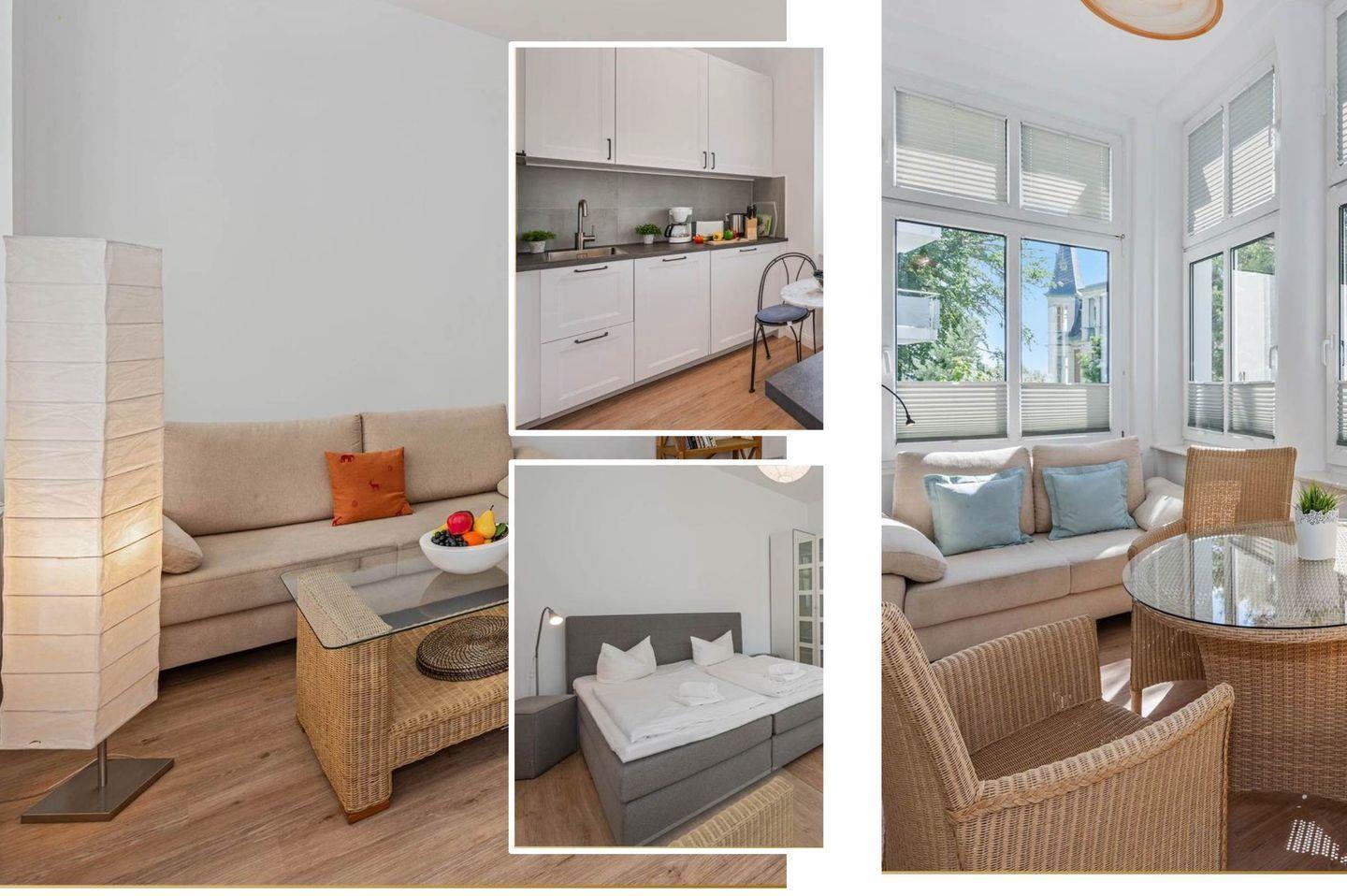 Das Villa Martha Appartement 02 in Seebad Heringsdorf bietet auf 46 m² eine gut ausgestattete Unterkunft mit separater Küche, Wohnzimmer, Schlafzimmer, WLAN und Waschmaschine. Im Garten mit Grill und Möbeln können Sie entspannen. Die Ostsee, Einkaufsmöglichkeiten und Restaurants sind jeweils nur 300 Meter entfernt. Haustiere sind nach Absprache willkommen.