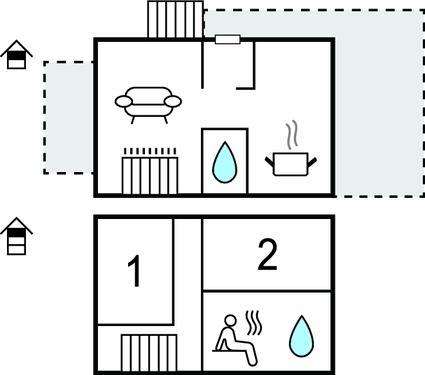 Begge soverommene har doble plisségardiner for optimal mørklegging, mens badet er forvandlet til en oase av velvære med et innbydende boblebad og en tradisjonell finsk badstue.