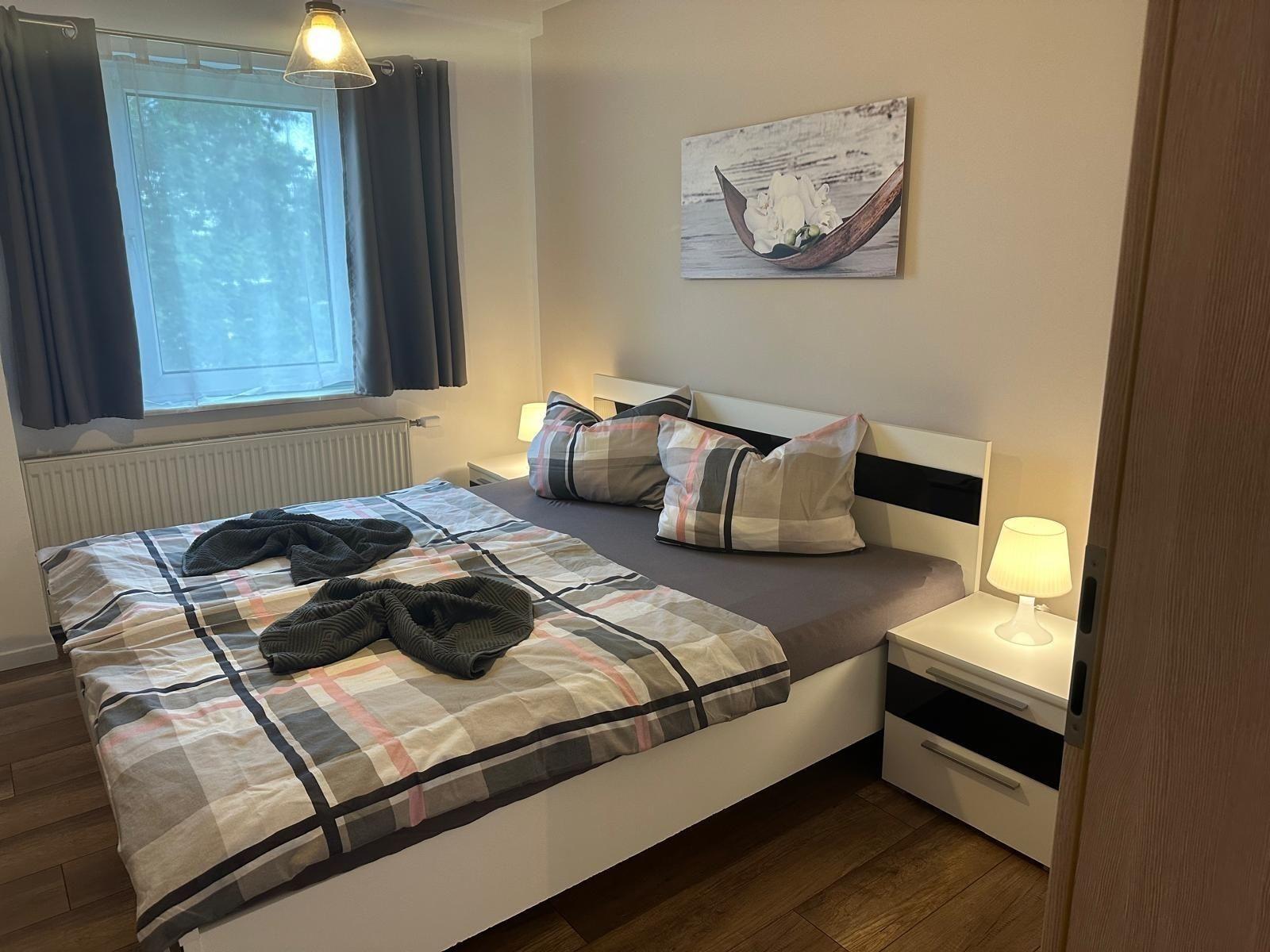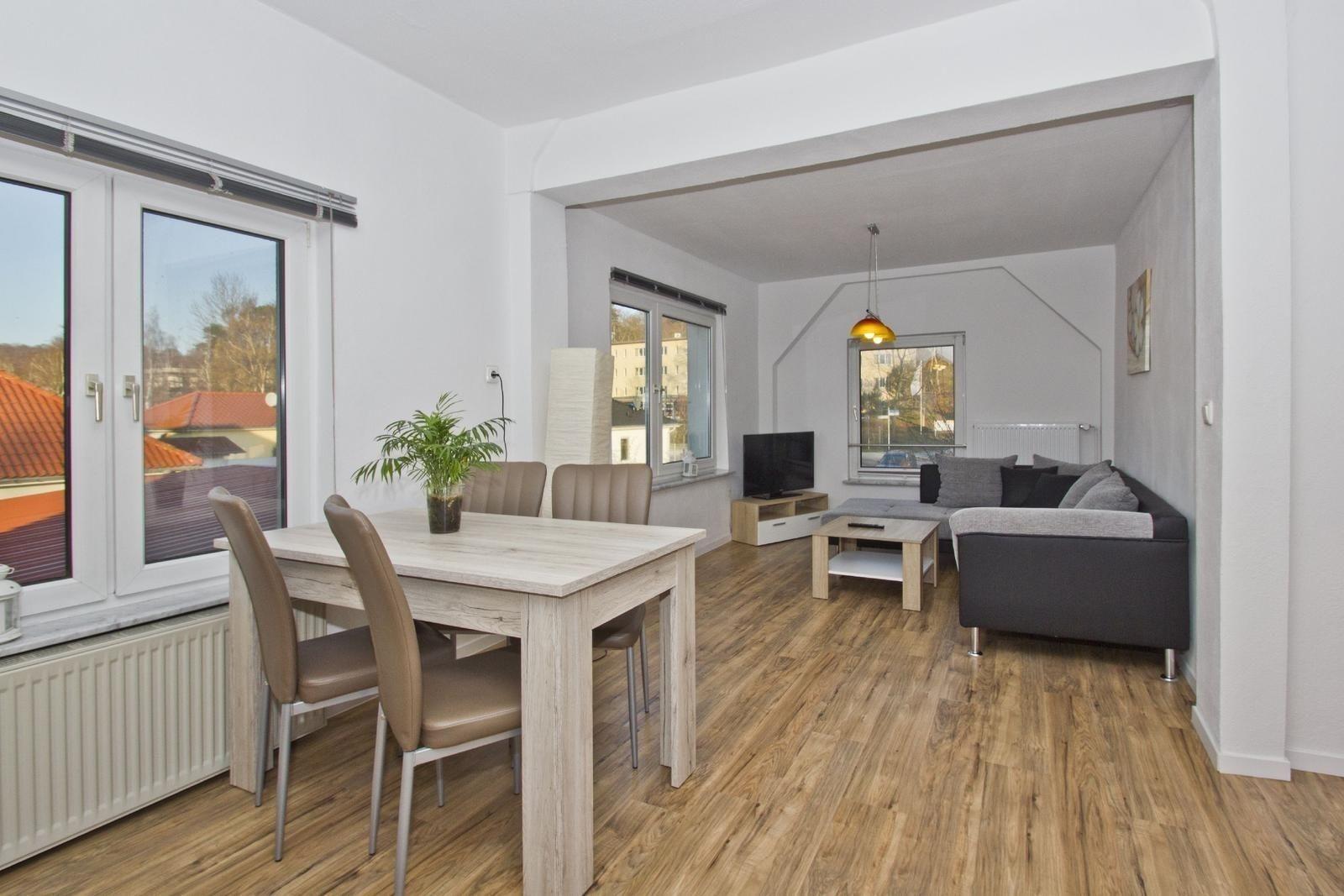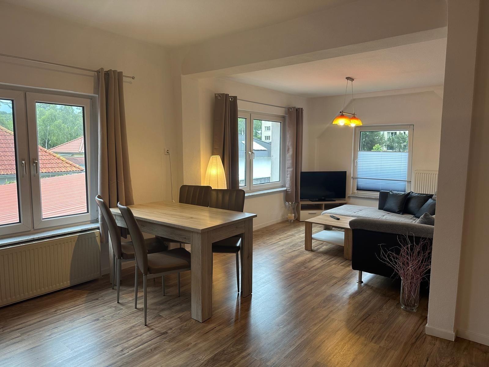 Schöne geräumige Wohnung für bis zu 4 Personen 2 separate Schlafzimmer großes offenes Wohnzimmer mit Essecke Bad mit Dusche und WC