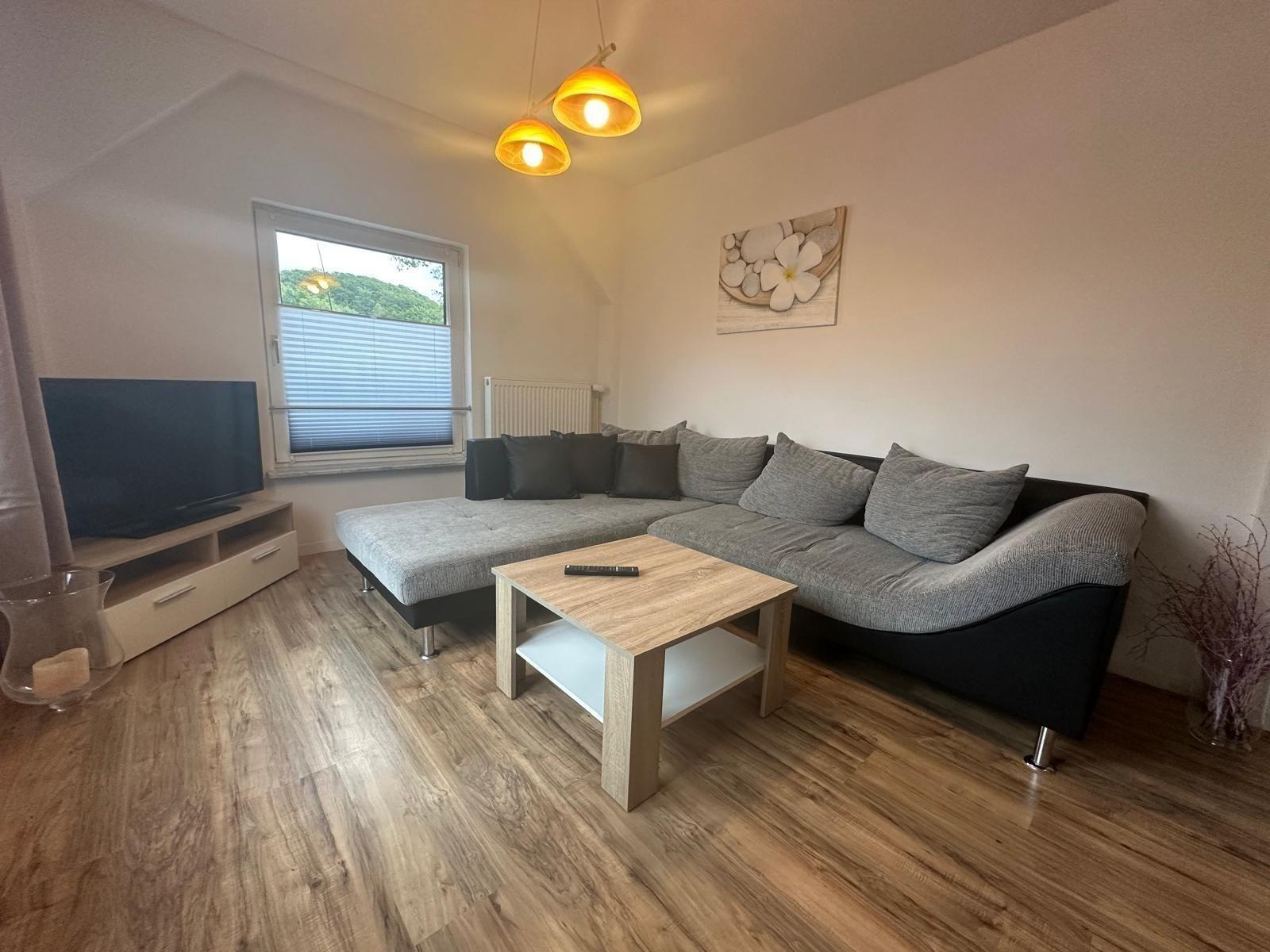 Wohnzimmer mit Sat Tv und Ecksofa
