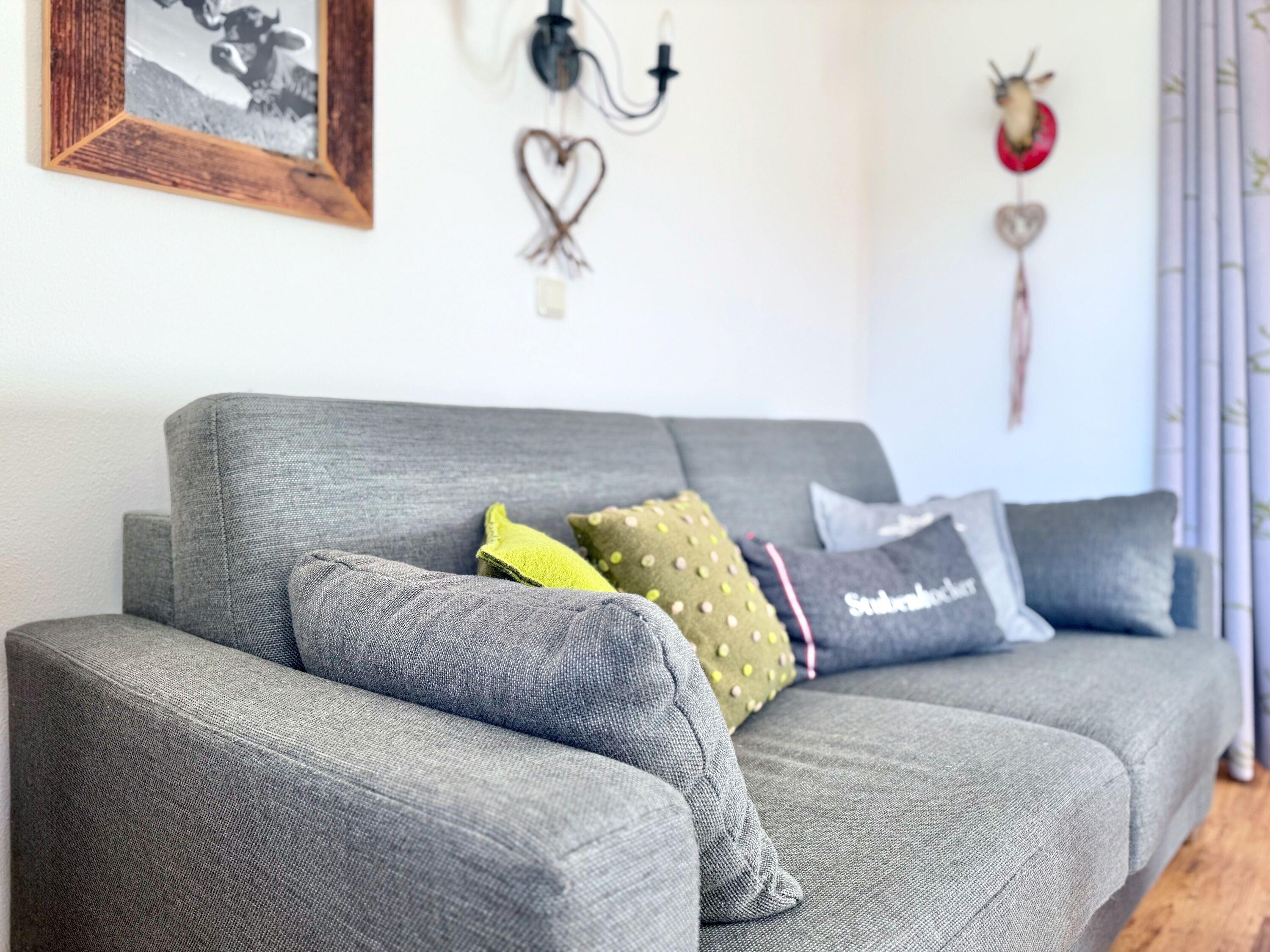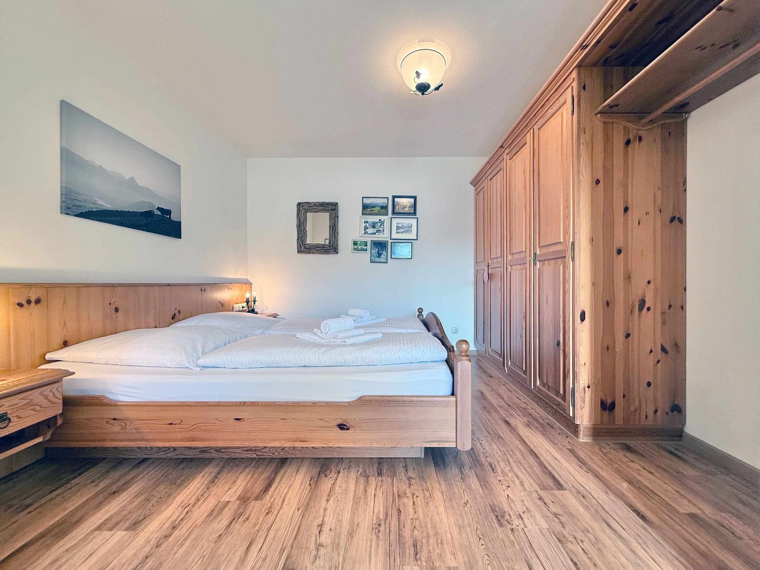 Die Ferienwohnung befindet sich im 1. Obergeschoss und verfügt über ein Schlafzimmer, einen gemütlichen Wohnbereich sowie ein Badezimmer mit Dusche und Toilette. Ein komfortables Doppelbett und ein Schlafsofa bieten angenehmen Schlafkomfort für zwei Erwachsene und ein Kind. Helle Räume, eine harmonische Einrichtung und liebevoll ausgewählte Details schaffen eine wohnliche Atmosphäre, in der man sich sofort zuhause fühlt. Vom Balkon genießen Sie einen schönen Blick auf die umliegenden Wiesen sowie Berge und Sie können den Abend gemütlich bei einem Sonnenuntergang ausklingen lassen.