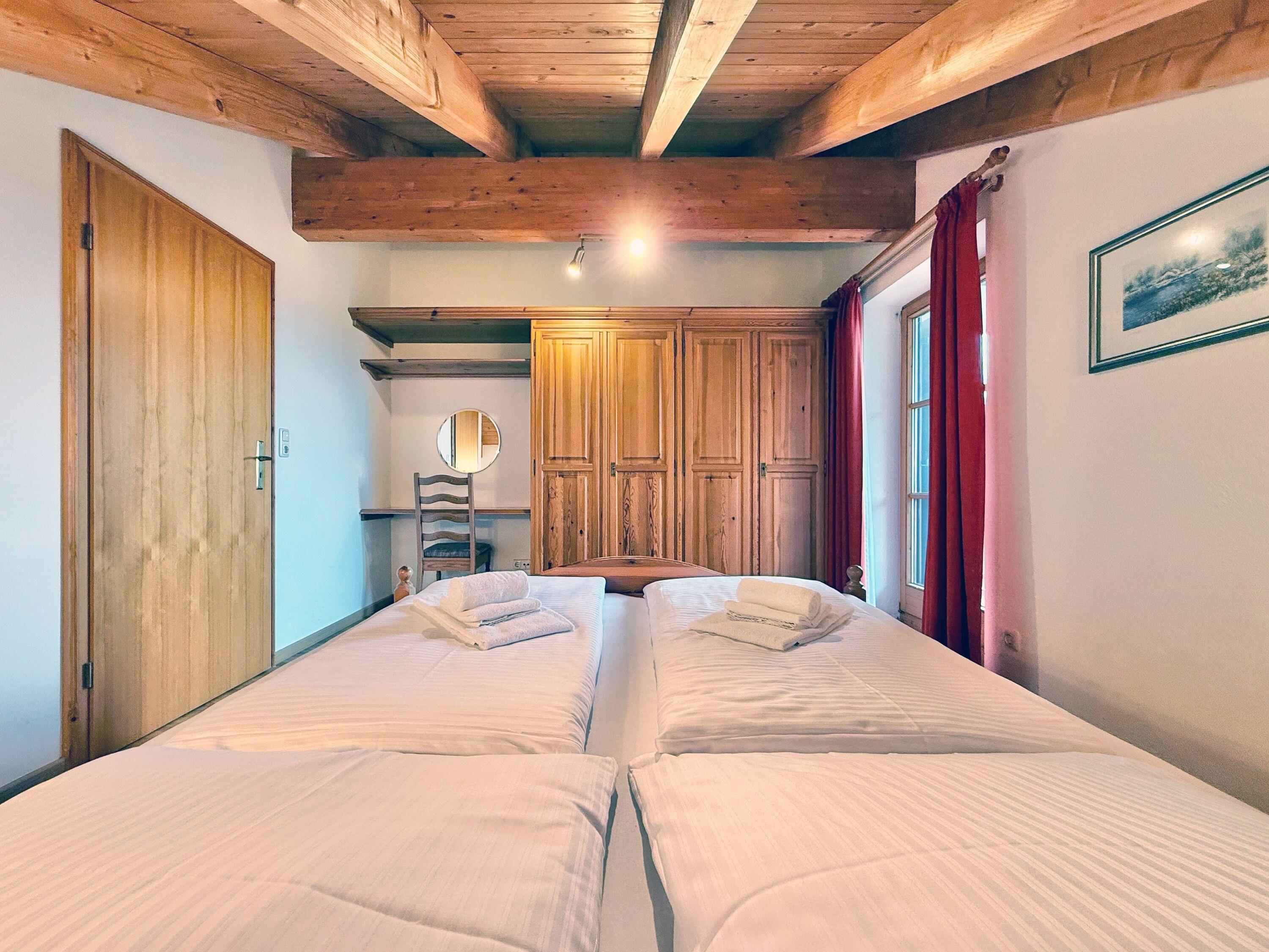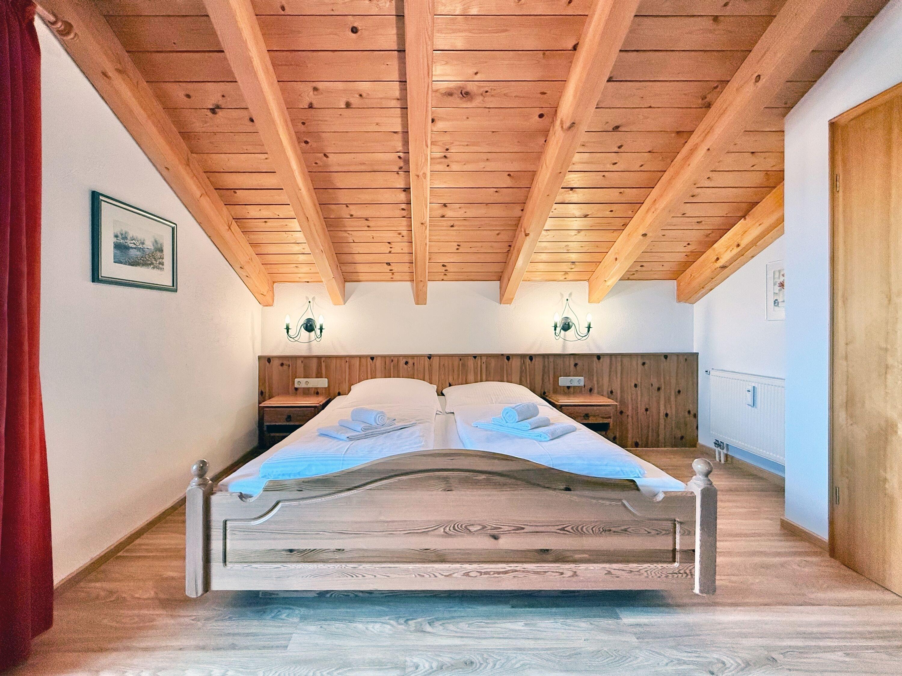 Die Ferienwohnung befindet sich im 2. Obergeschoss und überzeugt durch ihre praktische Aufteilung mit zwei klar getrennten Schlafbereichen. Ein Doppelbett im Schlafzimmer sowie ein Schlafsofa im Wohnbereich sorgen für angenehmen Schlafkomfort. Vom Balkon aus genießen Sie den Blick in Richtung Seeg und die umliegende Berglandschaft. Nach aktiven Tagen in den Bergen bietet die Wohnung einen ruhigen Rückzugsort zum Entspannen und Kraft sammeln.